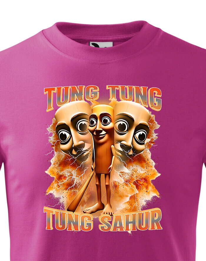 Toto detské tričko s potlačou Tung Tung Tung Sahur je skvelou voľbou pre všetky deti, ktoré milujú hudbu, rytmus a farebné motívy! Vyrobené z mäkkej, kvalitnej bavlny poskytuje maximálne pohodlie počas celého dňa – ideálne do školy, škôlky, na ihrisko či voľný čas. Postavička Tung Tung Tung Sahur je momentálne veľkým detským trendom, ktorý si deti zamilovali pre hravý vzhľad, energiu a veselú náladu. Tričko je vhodné pre chlapcov aj dievčatá, ktorí chcú byť originálni a vyniknúť. Vďaka farebnému a veselému dizajnu dodá každému outfitu radosť a štýl. Kvalitný materiál zabezpečí dlhú životnosť a stálofarebnosť aj po mnohých praniach. Skvelo sa hodí na bežné nosenie, narodeninové oslavy, hudobné krúžky, výlety alebo prázdninové dobrodružstvá. Ľahko sa kombinuje s džínsami, kraťasmi alebo legínami, takže sa stane obľúbeným kúskom každého dieťaťa. Tričko Tung Tung Tung Sahur je aj úžasným darčekom – poteší k narodeninám, Vianociam alebo len tak pre radosť. S týmto tričkom sa vaše dieťa bude cítiť štýlovo, veselo a plné energie každý deň!