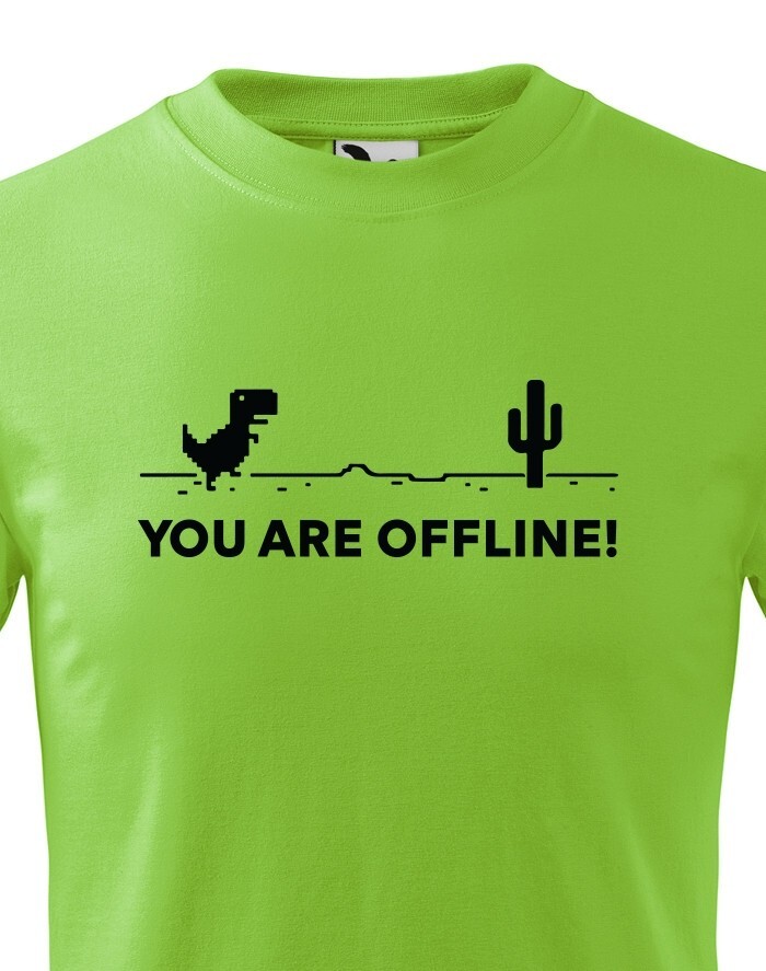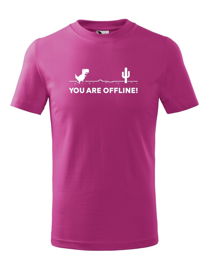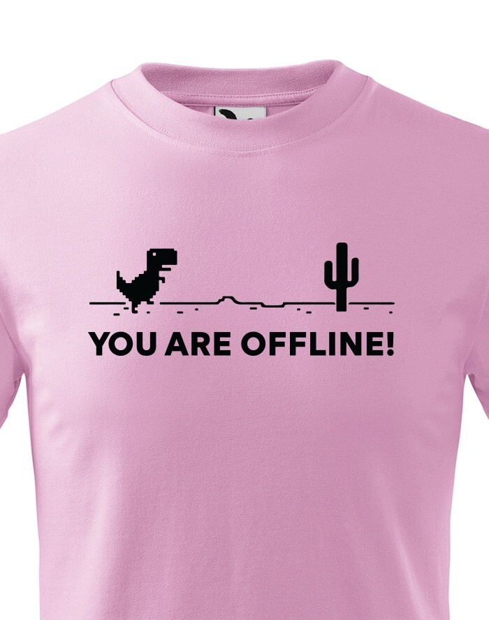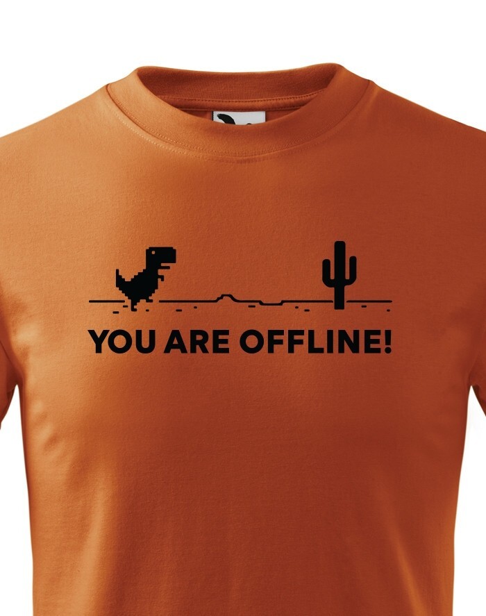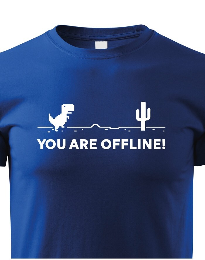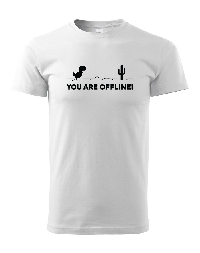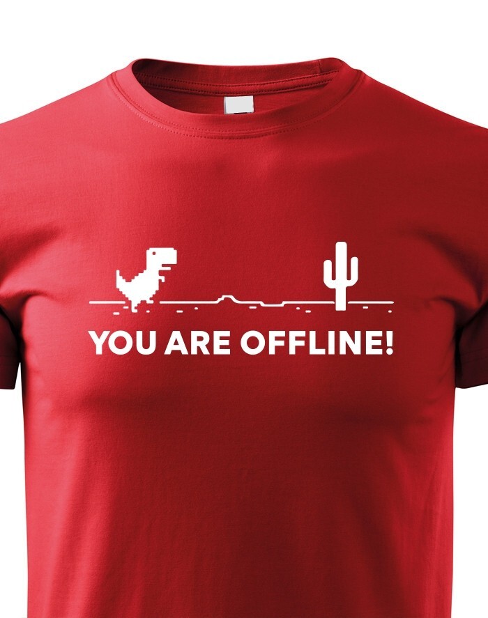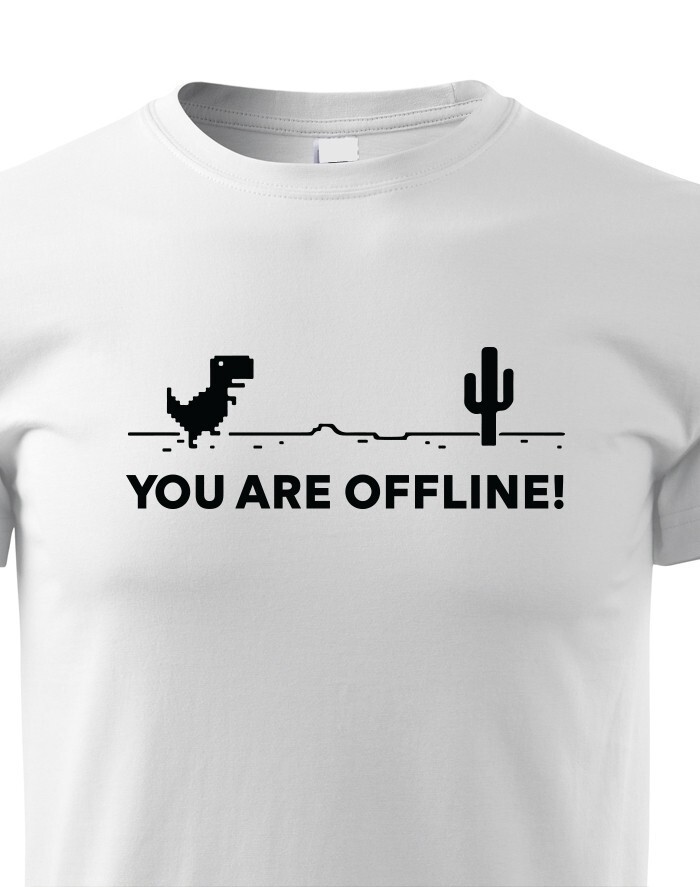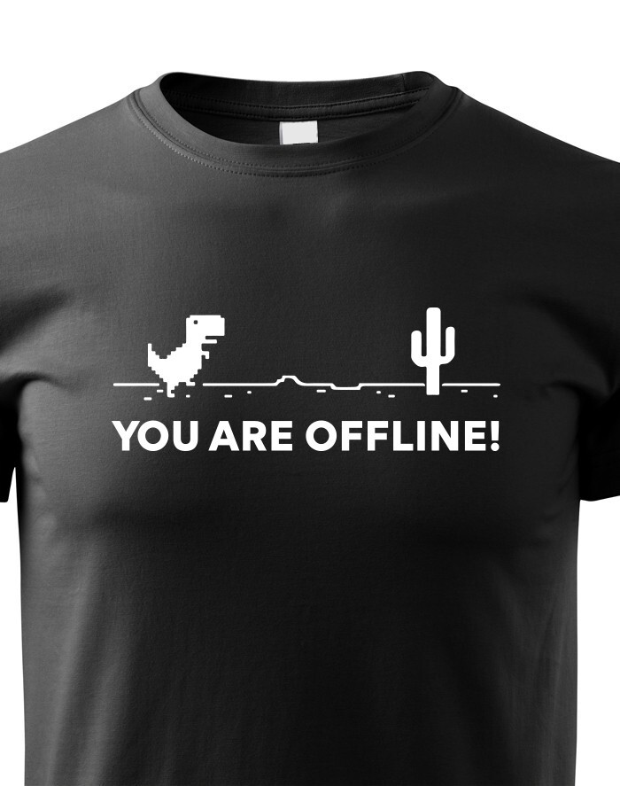 Poznáte vtipnú hru v Google Chrome, keď nieste pripojení k internetu? Tyranosaurus bežiaci prériou vás vždy zabaví, keď jste zrovna Offline. Tričko s vtipom a nadsázkou, ako inak, než pre pravých Geekov. Odíšte sa týmto originálom z dielne bezvatriko.