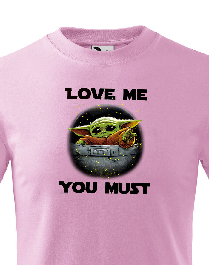 Ďalšie tričko s populárneho seriálu Mandalorianov. Tentokrát s cukríkom Baby Yoda. Komu by tento sladký parťák Mandalorianov neučaroval? Pokiaľ tiež patríš k fanúšikom Star Wars, toto tričko Ti jednoducho nesmie chýbať v zbierke. Text LOVE ME YOU MUST dokonale vystihuje tento skvelý motív na tričko.