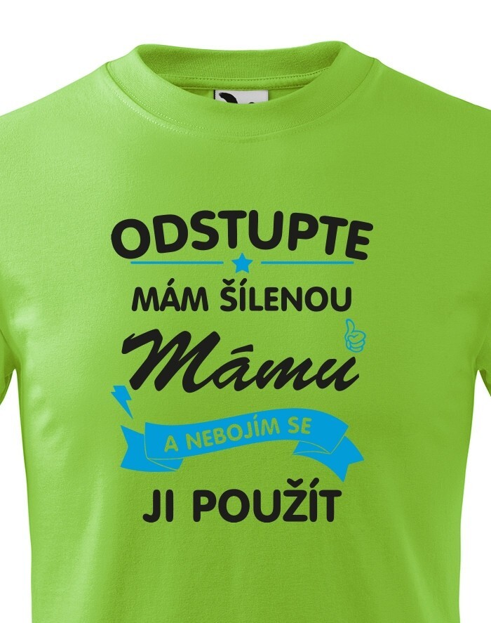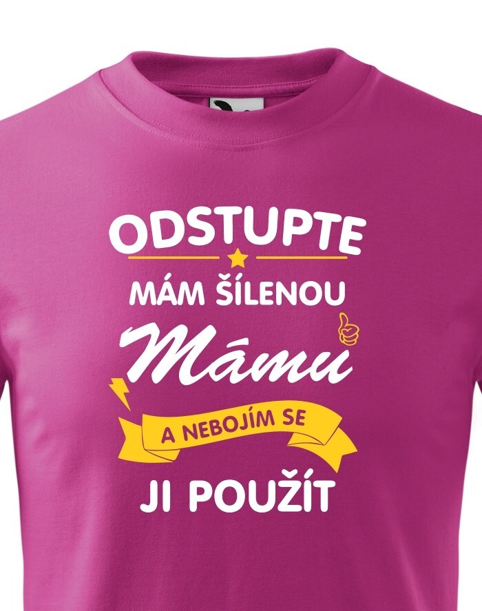 Detské tričko s potlačou "Odstúpte mám šialenú mamu a nebojím sa ju použiť" je každodenným pripomenutím toho, že vaša mama bude vždy tá naj naj na svete. Ako inak urobiť neskutočnú radosť ako s týmto tričkom. Tričko je ideálne k narodeninám, na Vianoce alebo len tak pre radosť.