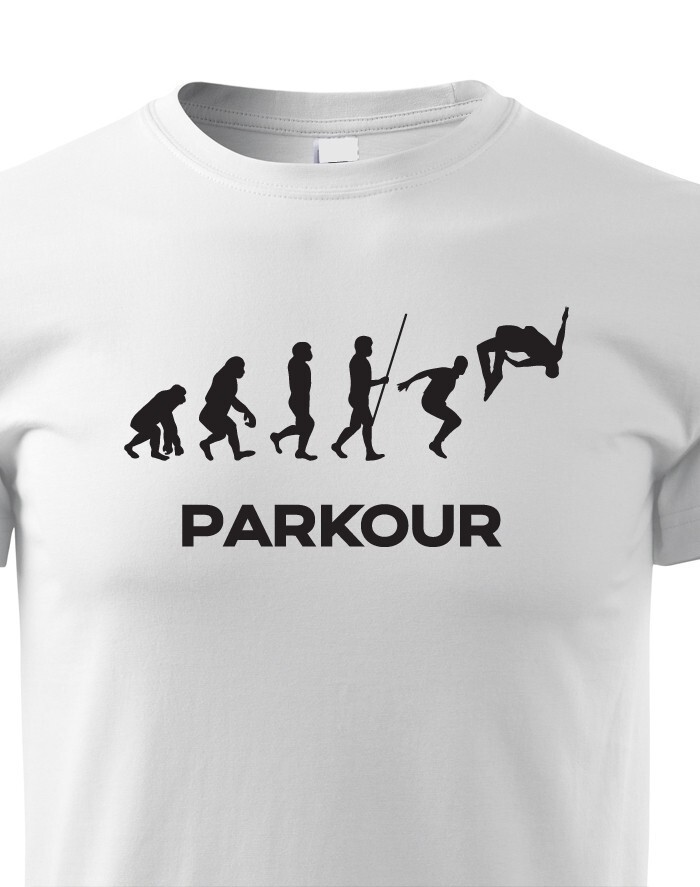 Detské tričko zobrazujúce evolúciu parkouru.