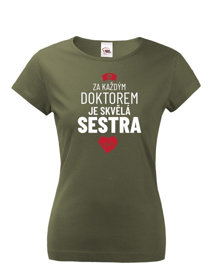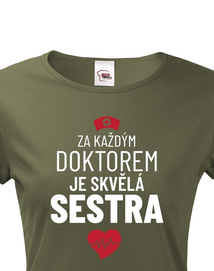 Originálne tričko pre zdravotné sestry s textom "Za každým doktorom je skvelá sestra" Ak hľadáš darček pre zdravotnú sestru, toto tričko bude to pravé. Nezáleží na tom, či máš tričko k narodeninám alebo Vianociam, alebo proste len tak pre radosť. Táto potlač jednoducho urobí veľký kus parády!