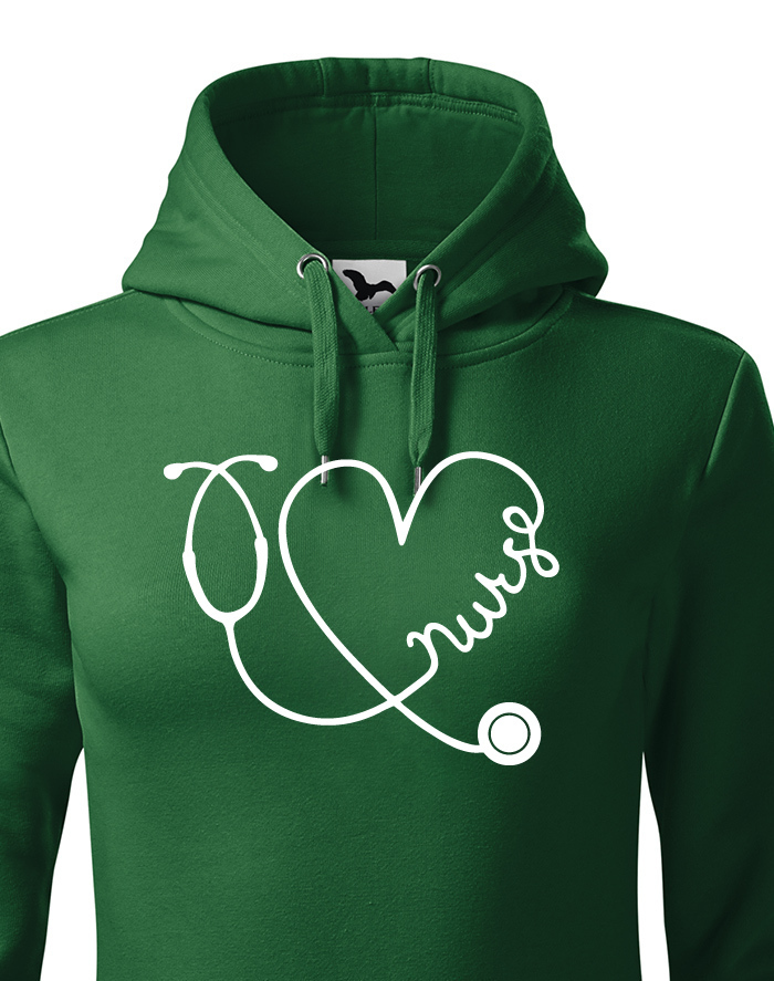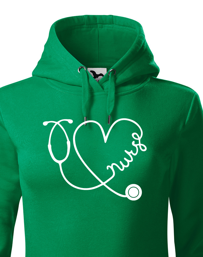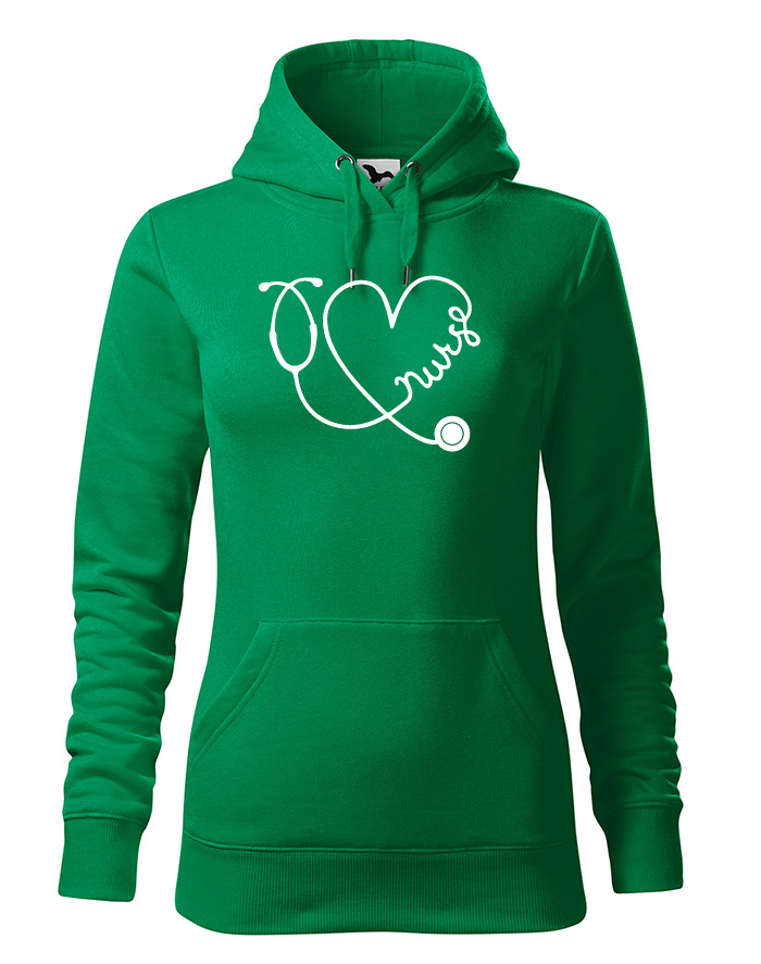 Ďalšia mikina s potlačou zo série pre zdravotné sestry. Motív s fonendoskopom, ktorý tvorí srdiečko a v ňom nápis NURSE urobí radosť každej zdravotnej sestre. Mikinu ponúkame v niekoľkých atraktívne odtieňoch, na vás bude len vybrať ten správny. Mikina bude skvelá ako darček k narodeninám, alebo Vianociam, ale poteší samozrejme len tak.