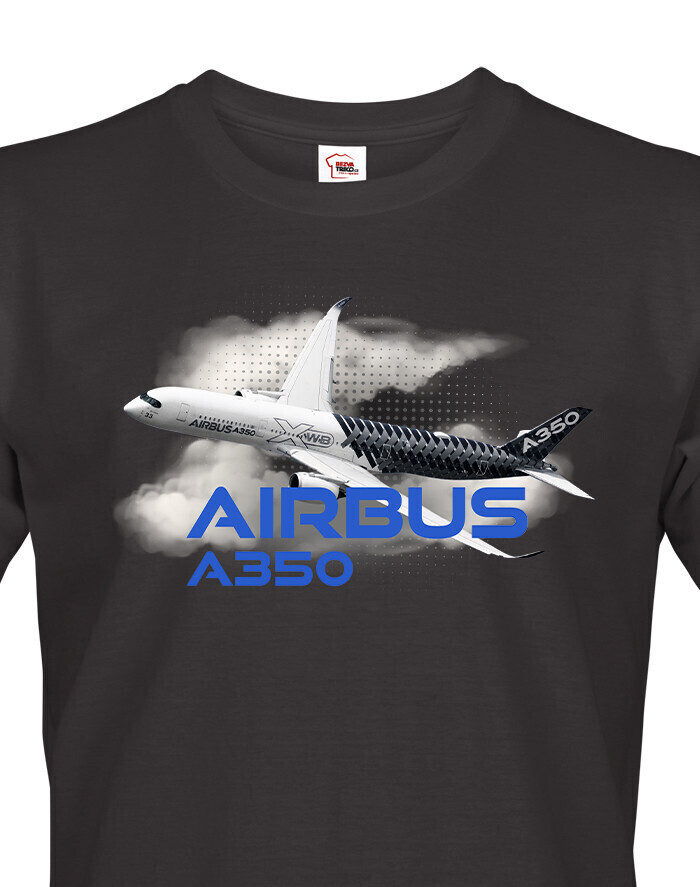 Motív vychádza z ikonického dizajnu Airbus A350, ktorý zaujme všetkých fanúšikov letectva a moderných lietadiel. Detailné zobrazenie lietadla na hrudi jasne ukazuje, že si nadšenec do letov a všetkého, čo je v oblakoch.