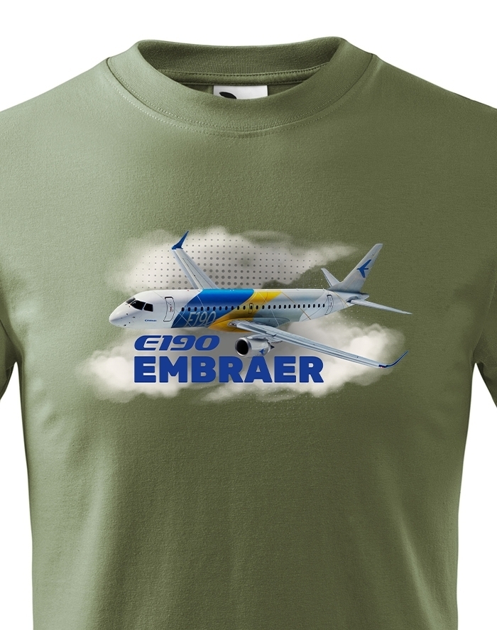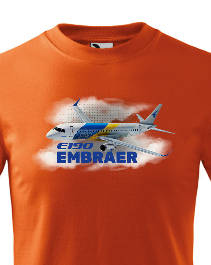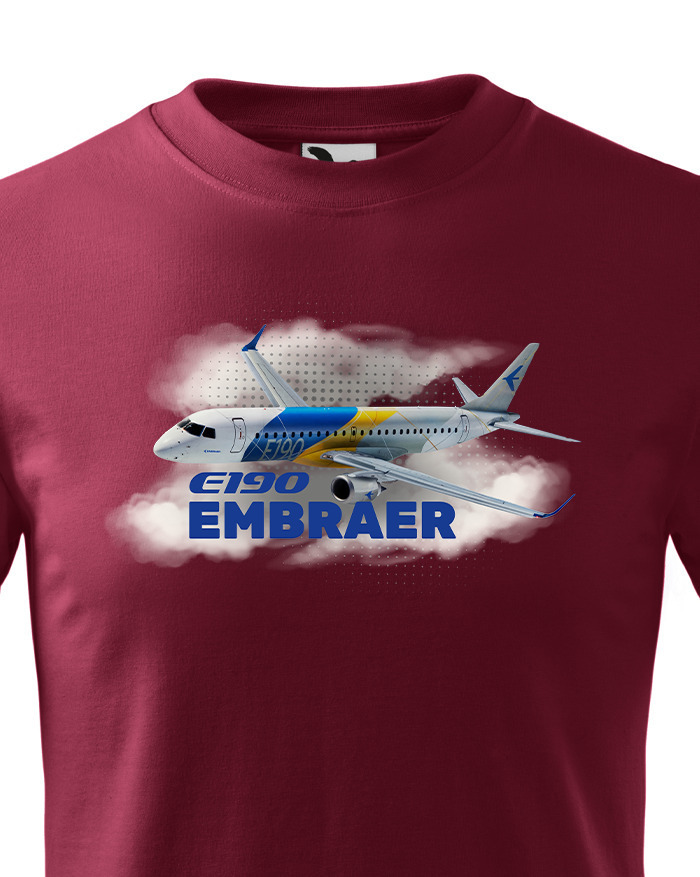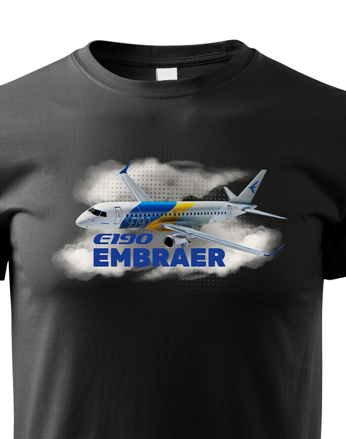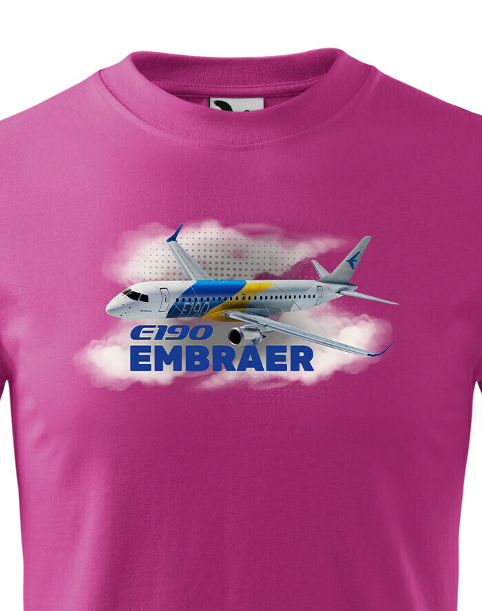 Motív zobrazuje Embraer E190 v oblakoch s jeho názvom a je navrhnutý tak, aby deti bavilo sledovať detaily lietadla a snívať o dobrodružstve vo vzduchu. Lietadlo pôsobí hravo a ukazuje smer fantázie. Tričko je ideálne na hranie, výlety a každodenné nosenie – pre malých pilotov, ktorí milujú letectvo a dobrodružstvo.