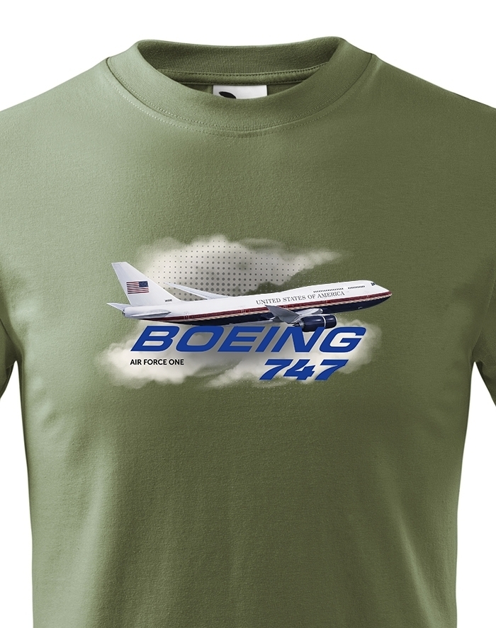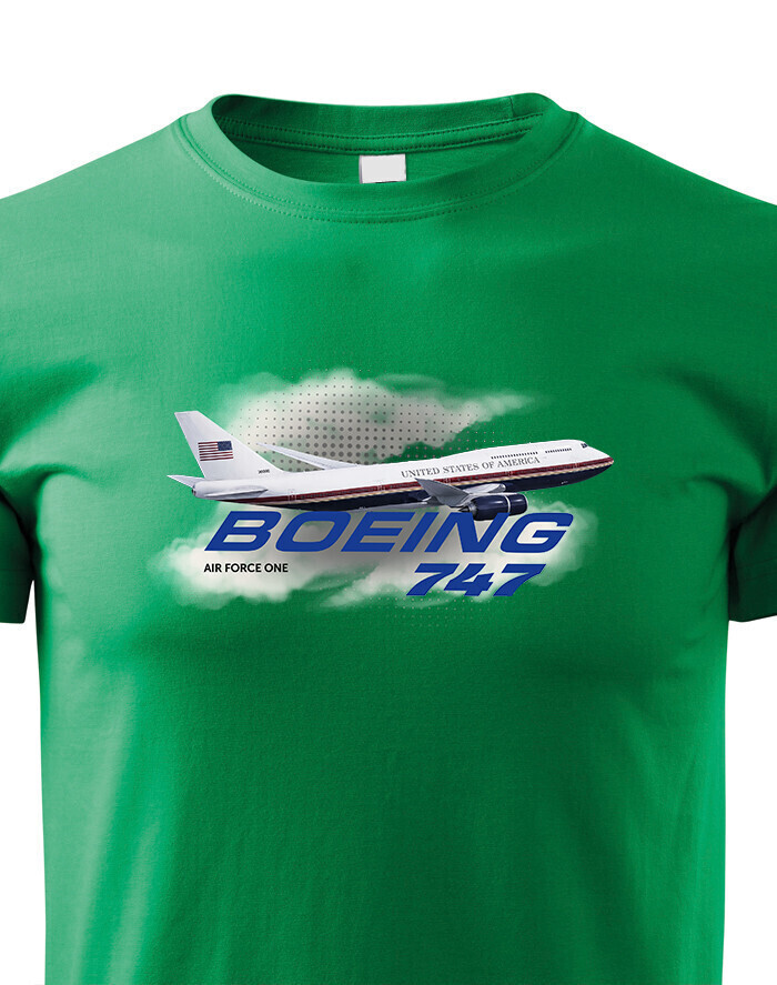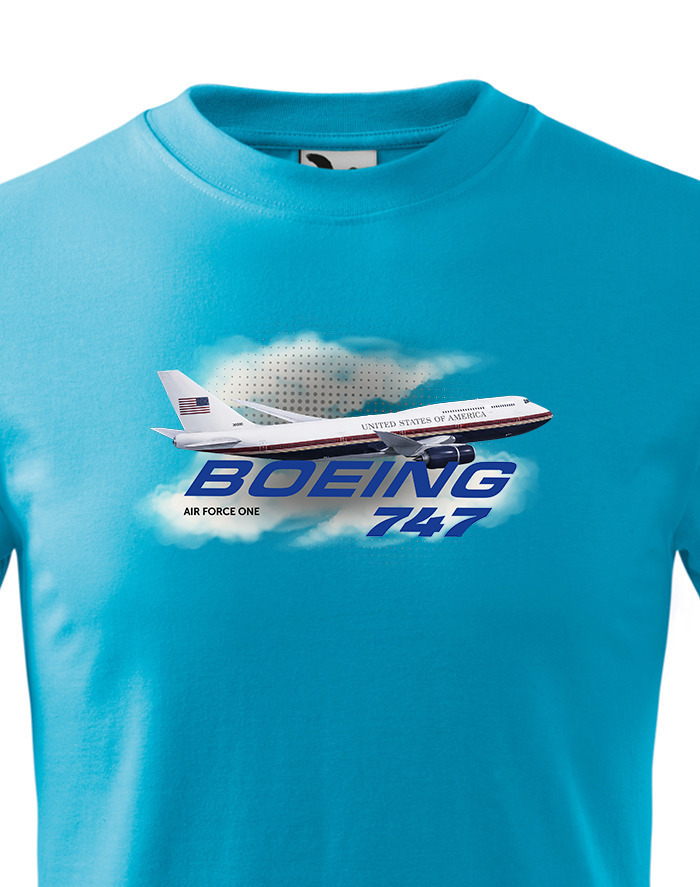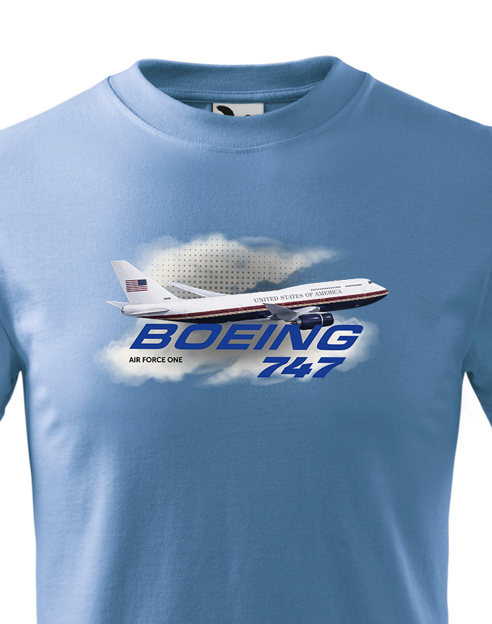 Keď snívaš o lietaní vysoko nad oblakmi. Niektoré lietadlá len lietajú. Iné vezú prezidenta a píšu históriu. Detské tričko s motívom Boeing 747 Air Force One prenesie malých dobrodruhov do sveta veľkých lietadiel a veľkých snov. Air Force One je slávne prezidentské lietadlo Spojených štátov – upravený Boeing 747, ktorý patrí medzi najznámejšie stroje na svete. Je symbolom sily, bezpečnosti a dobrodružstva vo vzduchu.