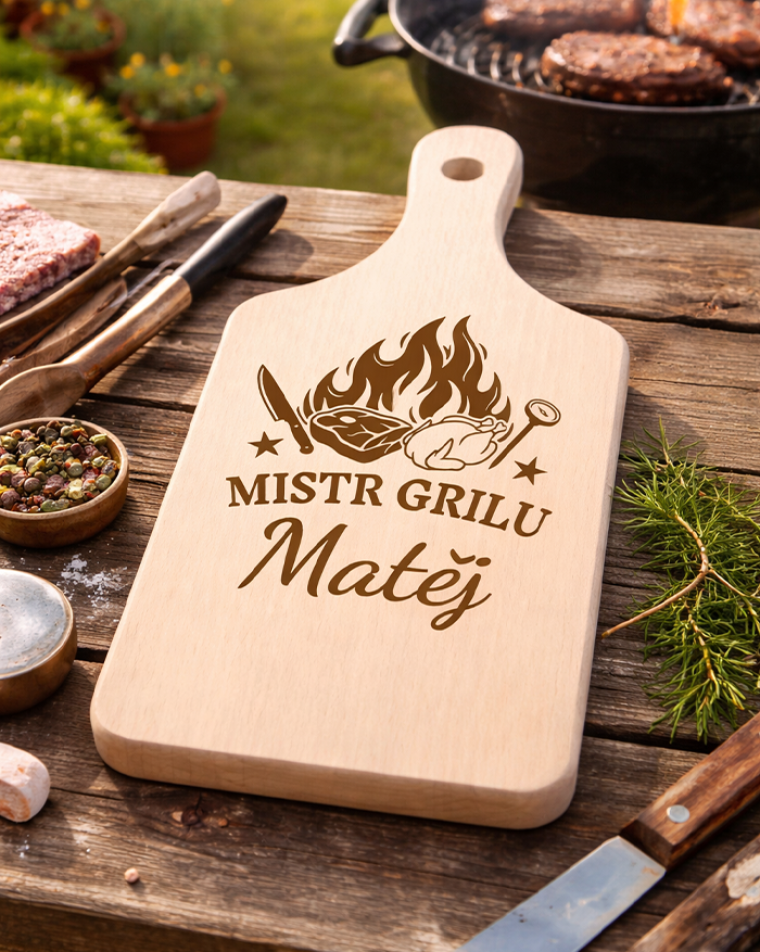 Motív Majster grilovania je jasný a hravý – ukazuje, že grilovanie beriete s vášňou a humorom. Rozmery sú ideálne na prípravu jednohubiek, steakov alebo syrov. Vyrobené z kvalitného dreva, ktoré vydrží opakované používanie. Meno na výber – dodajte doske osobný nádych a urobte z nej jedinečný darček.