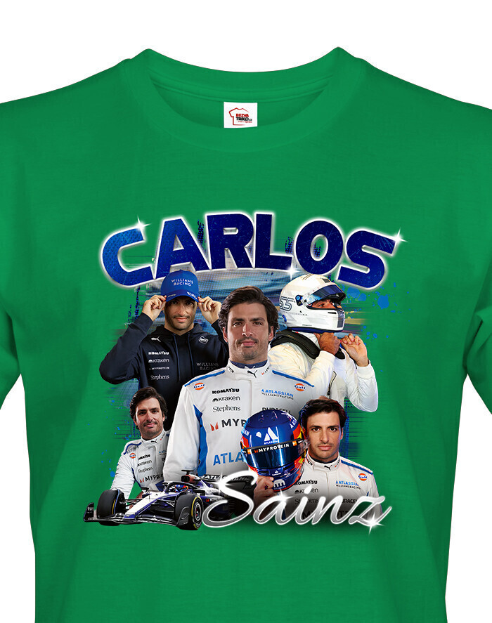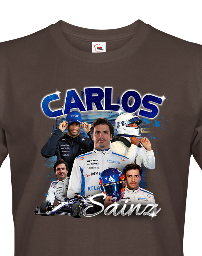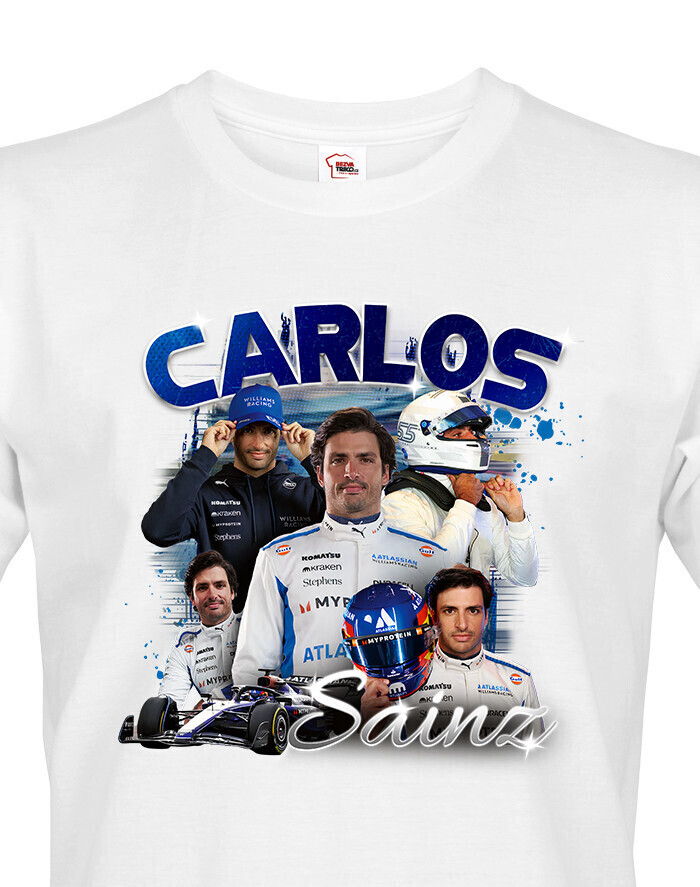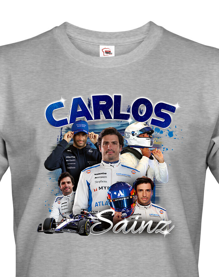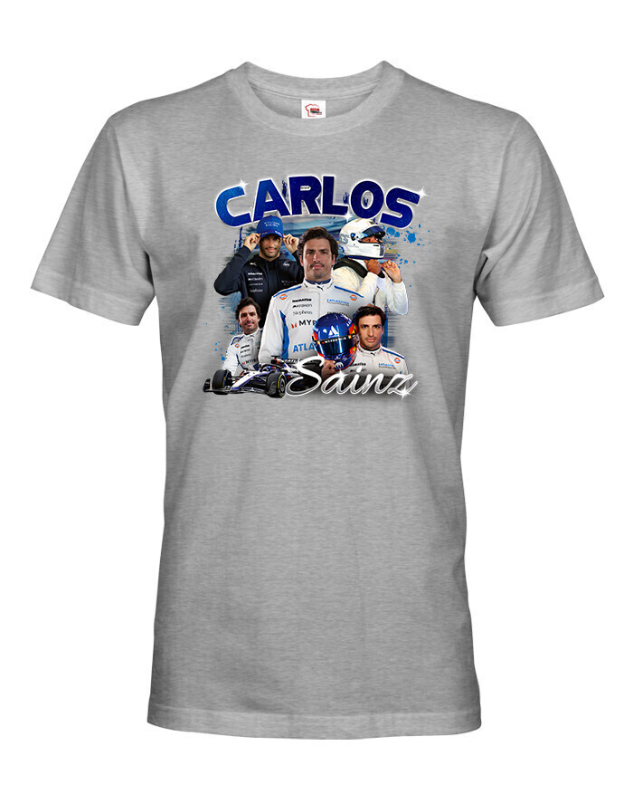 Toto štýlové tričko Carlosa Sainza je ideálne pre fanúšikov formuly 1, ktorí fandia srdcom a štýlom. Carlos Sainz, španielsky jazdec známy svojou precíznou jazdou, taktickým myslením a charizmou, si získal fanúšikov po celom svete. Dizajn trička zobrazuje Carlosa v rôznych pózach vrátane jeho auta a všetko dopĺňajú modré a biele tóny v duchu tímu Williams. Vďaka vysokokvalitnej potlači a výraznej grafike tričko zaručene upúta pozornosť a bude skvelým doplnkom každého športového alebo bežného outfitu. Je vhodné pre všetky vekové kategórie - od mladých nadšencov motoristického športu až po skúsených fanúšikov rýchlych kolies. Skvelý darček na narodeniny, Vianoce alebo ako prekvapenie pre niekoho, kto obdivuje tento talentovaný pretekársky fenomén. Vhodná na sledovanie pretekov, motoristických podujatí alebo len na každodenné nosenie. Vďaka pohodlnému strihu si ju obľúbite nielen na tribúnach, ale aj doma pred televízorom. Ukážte, komu fandíte, a staňte sa súčasťou Sainzovho tímu. S týmto tričkom dáte najavo svoju vášeň pre F1 štýlovo a s hrdosťou!