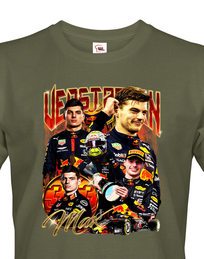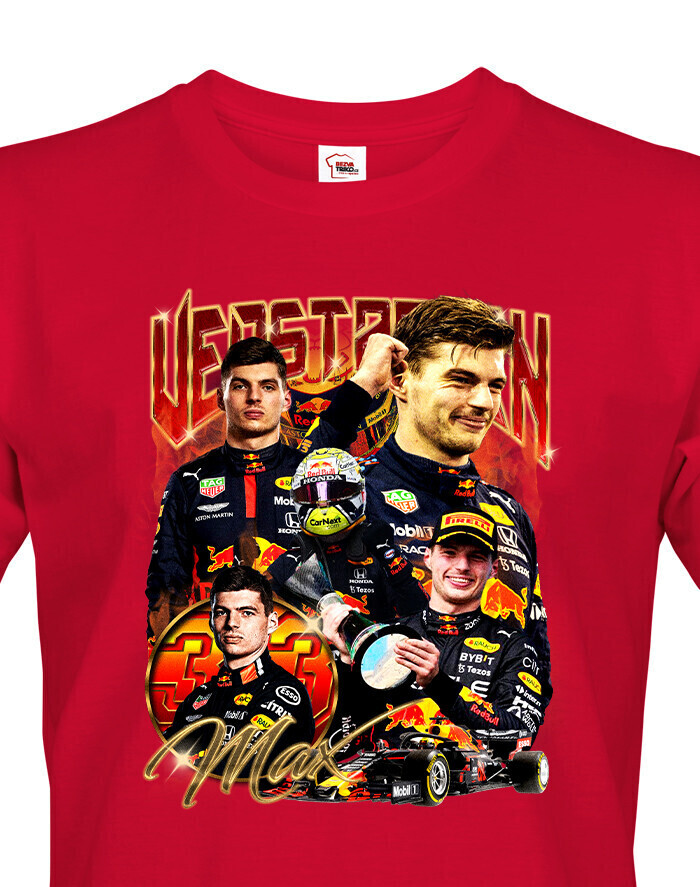 Toto tričko je ideálnou voľbou pre každého, kto sleduje kariéru Maxa Verstappena a obdivuje jeho nezastaviteľný talent vo Formule 1. Max Verstappen je jedným z najmladších a najúspešnejších jazdcov vo Formule 1. Svojou neuveriteľnou rýchlosťou a húževnatosťou si získal veľkú základňu fanúšikov a stal sa majstrom sveta. Dizajn trička zobrazuje Maxa v pretekárskej kombinéze, čo evokuje jeho dominanciu na trati a neustálu túžbu po víťazstve. Vďaka kvalitnému materiálu a pohodlnému strihu je tričko ideálne na každodenné nosenie, sledovanie pretekov alebo jednoducho ako módny kúsok na vyjadrenie podpory tomuto výnimočnému jazdcovi. Je ideálna pre každého fanúšika Maxa Verstappena, či už ste dlhoročný fanúšik, alebo nový nadšenec Formuly 1. Skvelý darček pre každého, kto oceňuje Verstappenovu neúnavnú snahu o dosiahnutie najvyšších cieľov.