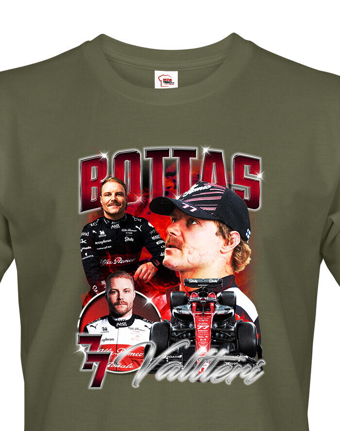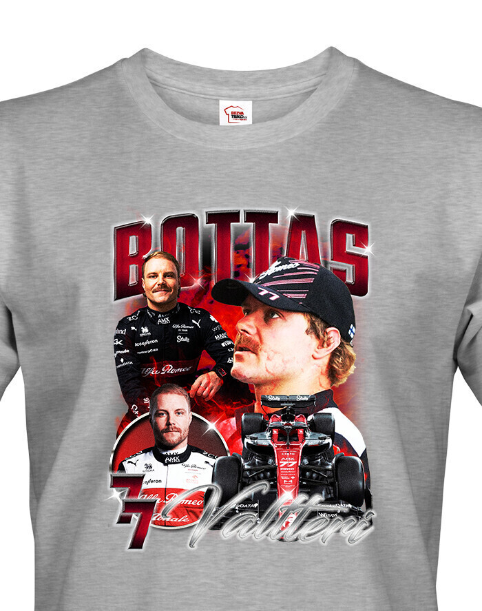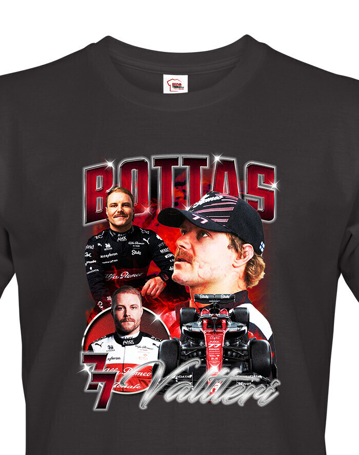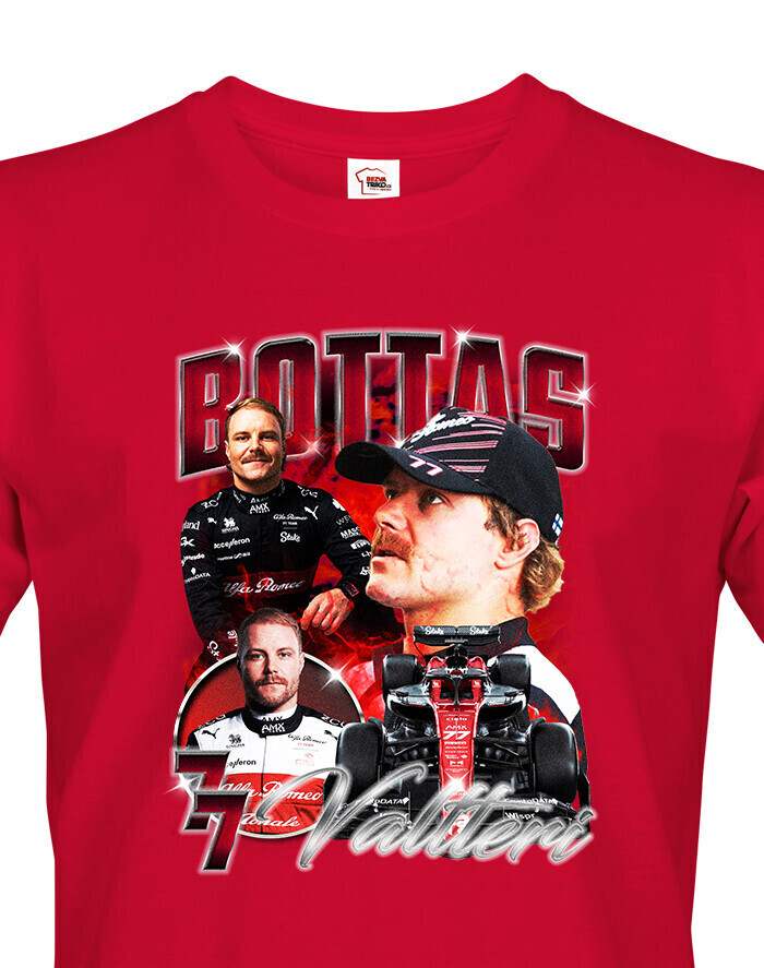 Toto tričko je poctou Valtterimu Bottasovi, jednému z najuznávanejších jazdcov formuly 1, ktorý si získal fanúšikov na celom svete svojou precíznou jazdou, taktickým myslením a nezlomným duchom. Dizajn kombinuje jeho ikonické momenty z pretekov a pretekárske číslo 77, ktoré je s ním neodmysliteľne spojené. Bottas, bývalý kľúčový jazdec a súčasná hviezda tímu Alfa Romeo, je známy nielen svojou rýchlosťou, ale aj schopnosťou prispôsobiť sa akýmkoľvek podmienkam a vytrvať aj v najťažších súbojoch na trati. Tričko zachytáva jeho vášeň pre pretekanie a fínske odhodlanie, ktoré z neho urobilo jedného z najuznávanejších jazdcov posledného desaťročia. Je ideálne pre každého fanúšika motoristického športu, ktorý chce nosiť symbol rýchlosti, presnosti a nekompromisného pretekárskeho štýlu. Skvele sa hodí na sledovanie Veľkých cien, bežné nosenie alebo ako darček pre skutočných nadšencov Formuly 1.