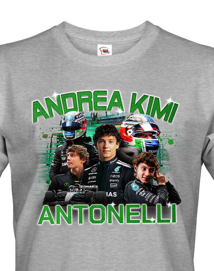 Tričko s mladým pretekárskym talentom Andreom Kimim Antonellim je povinnou výbavou každého fanúšika motoristického športu, ktorý sleduje nástup novej generácie jazdcov. Andrea Kimi Antonelli, taliansky pretekár a člen prestížnej akadémie Mercedes-AMG, je jednou z najväčších nádejí budúcnosti formuly 1. Jeho výkony v juniorskom seriáli zaujali fanúšikov aj odborníkov, a práve preto je toto tričko také výnimočné. Dizajn trička vystihuje jeho energiu, sústredenie a pretekársku vášeň, vďaka čomu je nielen módnym doplnkom, ale aj vyjadrením obdivu k jeho športovému talentu. Je ideálne pre každého fanúšika formuly 1, mladého aj staršieho, či už je fanúšikom od začiatku, alebo svet rýchlych kolies práve objavuje. Tričko je vhodné na každodenné nosenie, sledovanie pretekov, motoristických podujatí alebo ako štýlový kúsok do kolekcie pretekárskeho oblečenia. Skvelý darček na narodeniny, Vianoce alebo ako motivačné prekvapenie pre niekoho s veľkými snami. Vďaka príjemnému materiálu a atraktívnemu dizajnu sa stane obľúbeným kúskom v každom šatníku. Podporte mladé talenty a buďte pri tom, keď sa píše nová kapitola motoristického športu. Týmto tričkom ukážete, že fandíte budúcnosti.