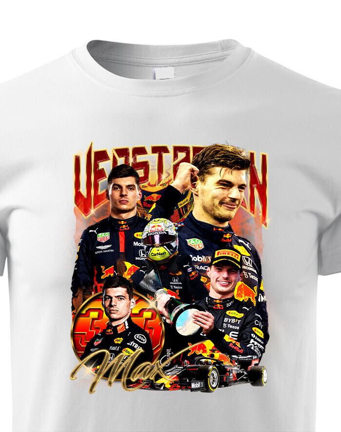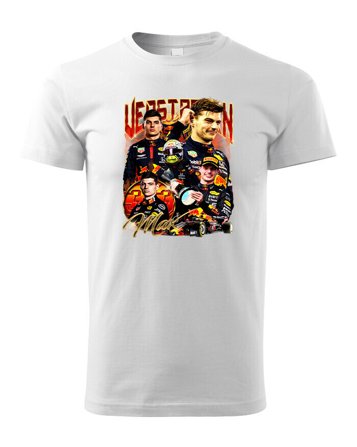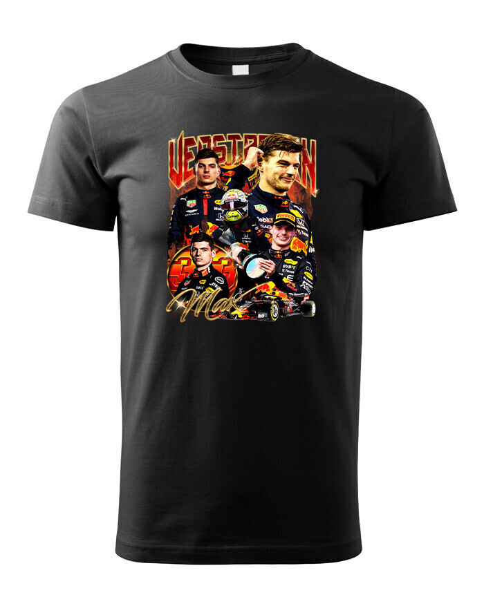 Toto tričko je ideálnou voľbou pre každého, kto sleduje kariéru Maxa Verstappena a obdivuje jeho nezastaviteľný talent vo Formule 1. Max Verstappen je jedným z najmladších a najúspešnejších jazdcov vo Formule 1. Svojou neuveriteľnou rýchlosťou a húževnatosťou si získal veľkú základňu fanúšikov a stal sa majstrom sveta. Dizajn trička zobrazuje Maxa v pretekárskej kombinéze, čo evokuje jeho dominanciu na trati a neustálu túžbu po víťazstve. Vďaka kvalitnému materiálu a pohodlnému strihu je tričko ideálne na každodenné nosenie, sledovanie pretekov alebo jednoducho ako módny kúsok na vyjadrenie podpory tomuto výnimočnému jazdcovi. Je ideálna pre každého fanúšika Maxa Verstappena, či už ste dlhoročný fanúšik, alebo nový nadšenec Formuly 1. Skvelý darček pre každého, kto oceňuje Verstappenovu neúnavnú snahu o dosiahnutie najvyšších cieľov.