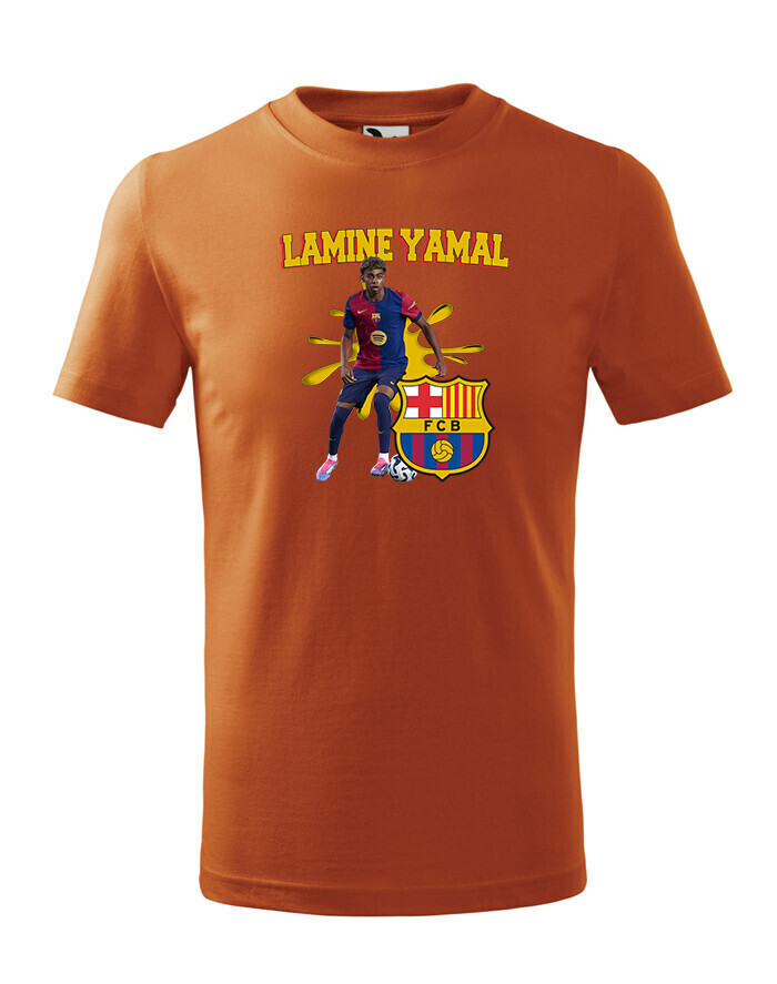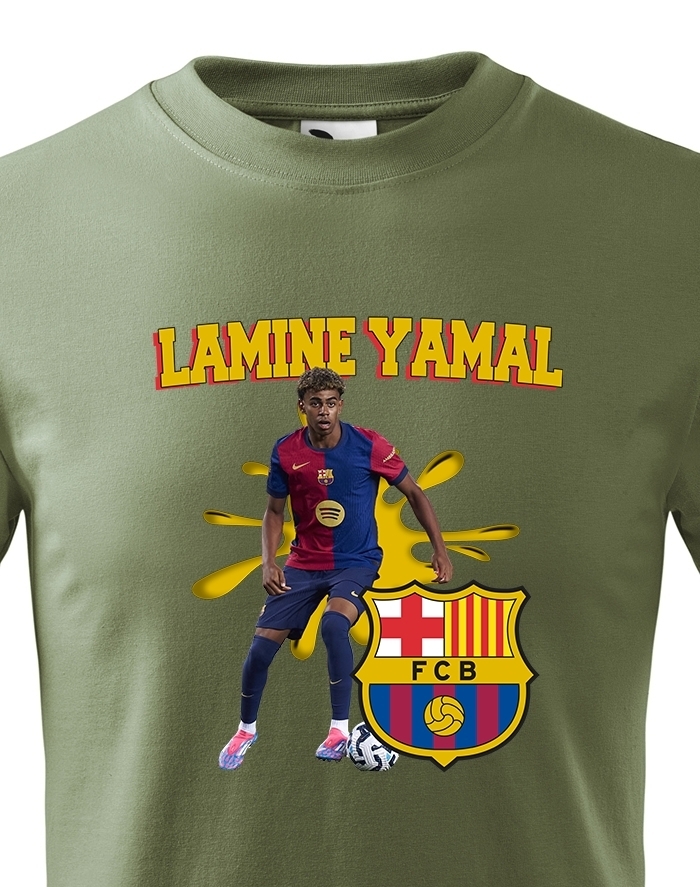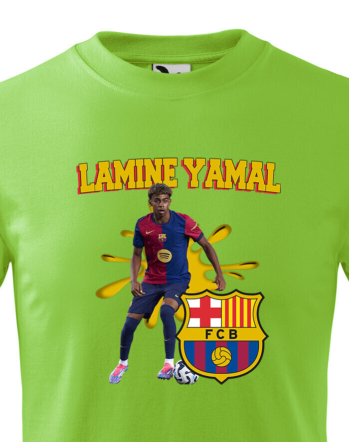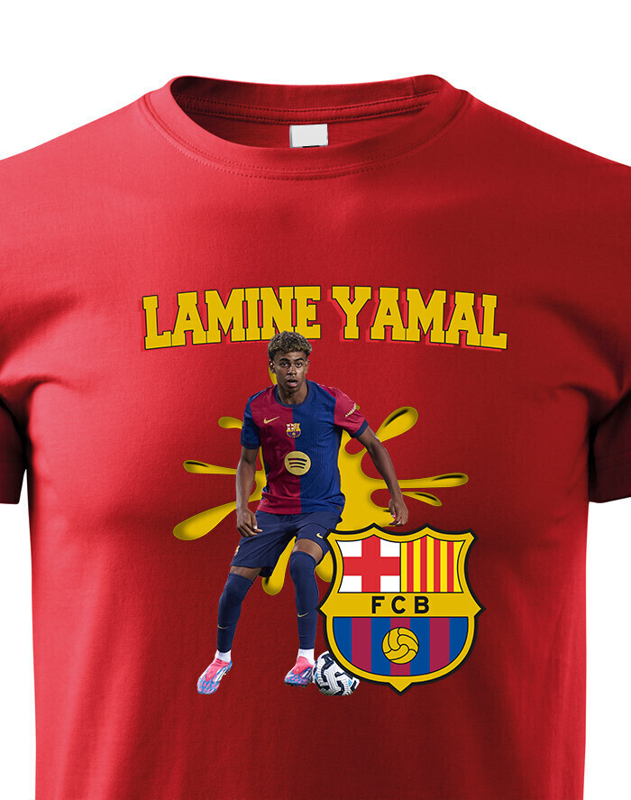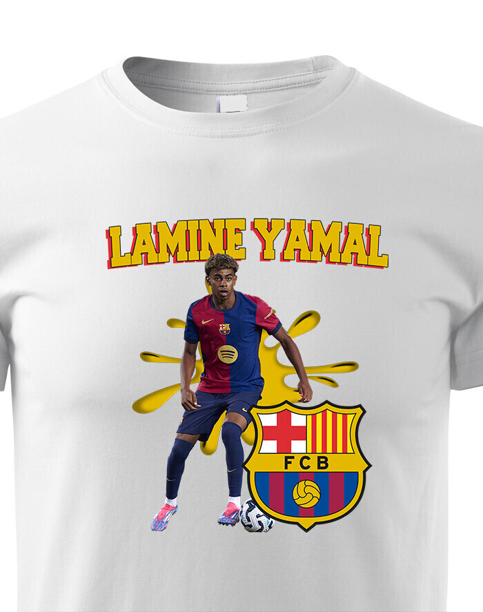 Detské tričko s Lamina Yamal v drese FC Barcelona je ideálnou voľbou pre všetkých malých fanúšikov tohto futbalového talentu. Tričko je vyrobené z kvalitnej a mäkkej bavlny, ktorá zaručuje maximálne pohodlie pri nosení, či už na tréningu, na ihrisku alebo počas bežného dňa. Na prednej strane je detailná potlač Lamina Jamala v drese Barcelony, ktorá zachytáva jeho ikonický štýl a futbalové zručnosti. Farby sú sýte a odolné voči častému praniu, takže tričko zostane krásne aj po mnohých dobrodružstvách.