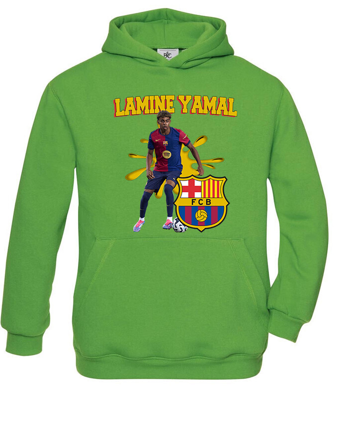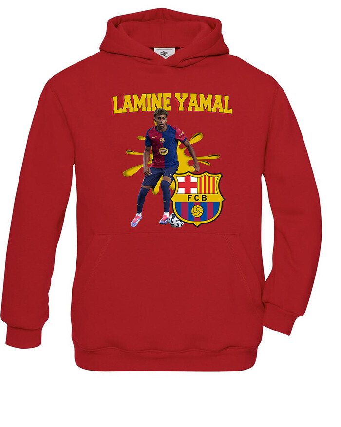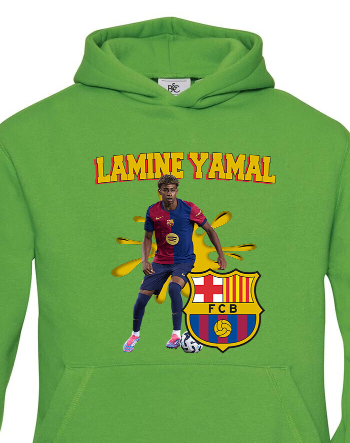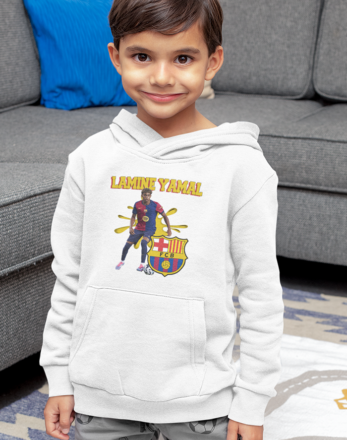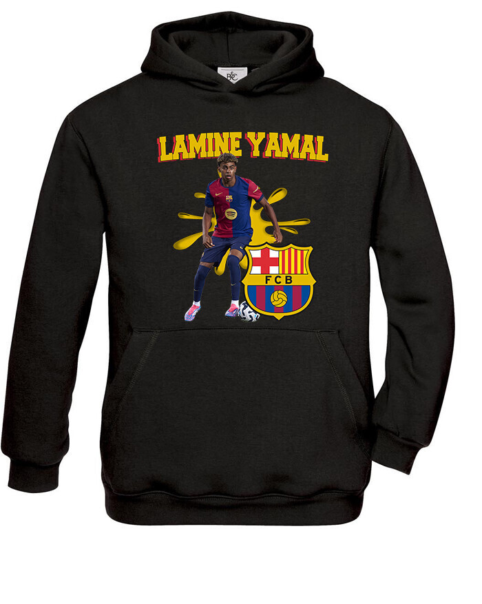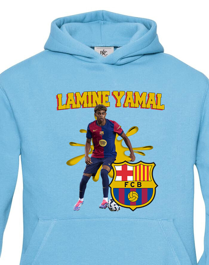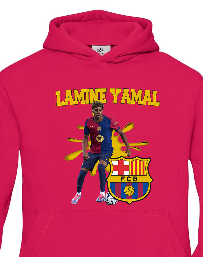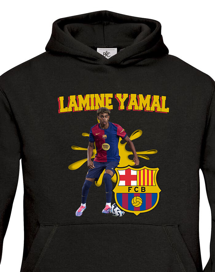 Detská mikina s motívom talentovaného futbalistu Lamineho Yamala v drese FC Barcelona je ideálnou voľbou pre mladých fanúšikov tohto mladého hviezdneho hráča. Mikina je vyrobená z kvalitnej bavlny a zaručuje maximálne pohodlie pri nosení a výborný odvod vlhkosti, čo ocenia pri športových aktivitách aj pri každodennom nosení. Klasický strih s lemom zaručuje dokonalé prispôsobenie a odolnosť, zatiaľ čo potlač s Lamine Yamalom v slávnom drese Barcelony dáva jasne najavo, kto je váš obľúbený hráč.