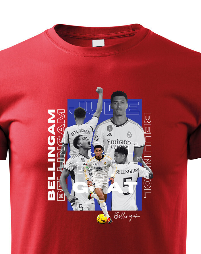 Detské tričko s motívom Jude Bellinghama je perfektnou voľbou pre malých futbalových fanúšikov a všetky deti, ktoré obdivujú mladú hviezdu anglického futbalu. Tento talentovaný stredopoliar sa preslávil svojím dynamickým štýlom hry, presnými prihrávkami a bojovnosťou na ihrisku, čo z neho robí jednu z najväčších nádejí súčasného futbalu. Tričko je vyrobené z kvalitnej mäkkej bavlny, ktorá poskytuje komfort a voľnosť pohybu, takže je vhodné na hry vonku, tréningy, zápasy aj každodenné nosenie. Potlač Jude Bellinghama dodáva tričku športový a moderný charakter, ktorý ocení každý mladý fanúšik futbalu. Vďaka univerzálnej veľkosti a pružnému materiálu perfektne sedí detskému telu a umožňuje pohodlné nosenie pre rôzne vekové skupiny. Tričko je tiež skvelým tipom na darček k narodeninám, Vianociam alebo len tak pre potešenie malého futbalového nadšenca. Tento kúsok nielen vyzerá štýlovo, ale aj inšpiruje deti k pohybu a láske k futbalu. Jednoducho ho skombinujete so šortkami, teplákmi alebo mikinou, čím vznikne nepostrádateľný kúsok detského šatníka. Spravte radosť svojmu malému športovcovi a kúpte mu toto štýlové a pohodlné tričko, ktoré pripomína jedného z najväčších mladých talentov súčasného futbalu – Jude Bellinghama.
