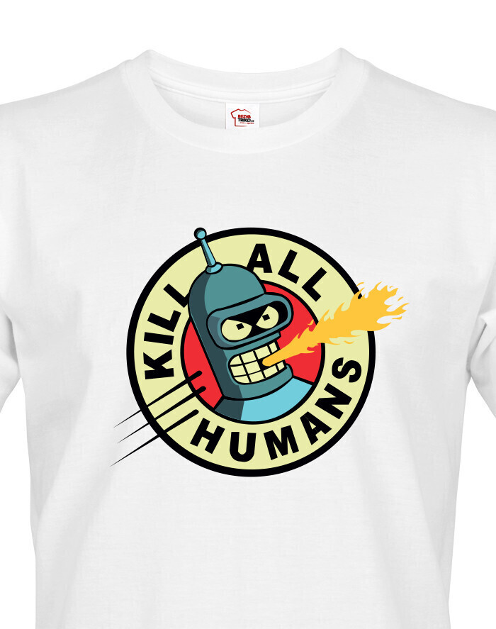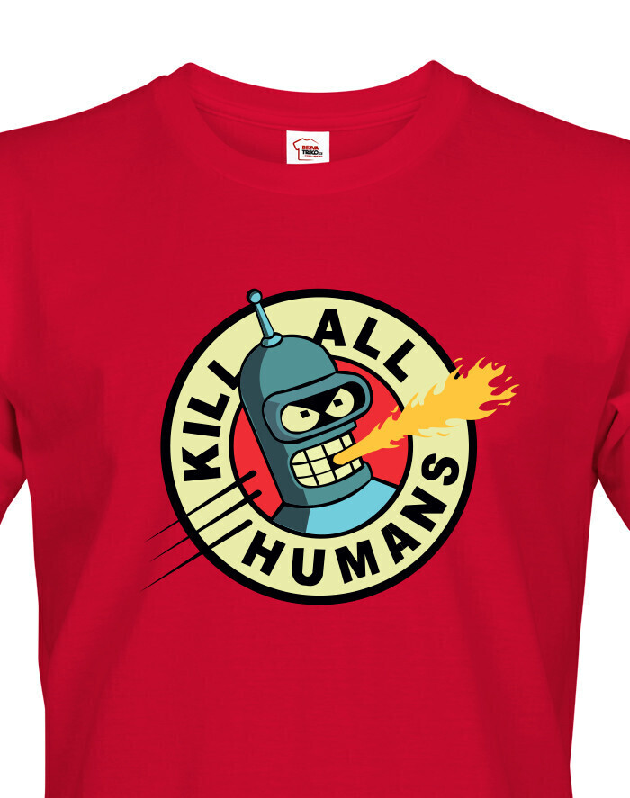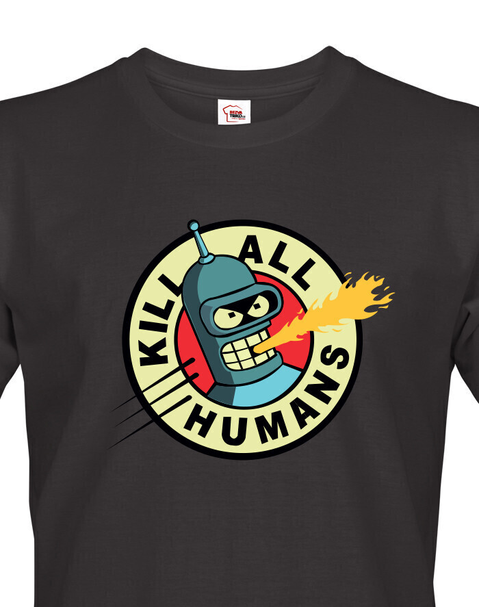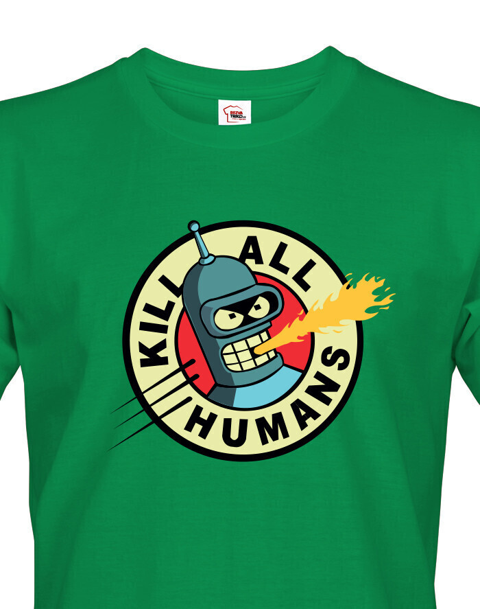 Pánské tričko s motivem Bendera "Kill All Humans" ze slavného seriálu Futurama je skvělým způsobem, jak vyjádřit svůj smysl pro humor a lásku k tomuto kultovnímu animovanému světu. S tímto tričkem budete vystupovat jako vtipný a trochu nebezpečný, připomínající nezaměnitelný robotický charakter, kterým je Bender. Jeho destruktivní motto "Kill All Humans" přináší do vašeho každodenního stylu špetku té správné futuristické ironie. Vytištěný motiv na tričku okamžitě upoutá pozornost a budete se cítit jako součást této ikonické vesmírné posádky. Navíc je vyrobeno z kvalitních materiálů, které zajišťují pohodlné nošení a dlouhou životnost. Pro každého fanouška Futuramy je toto tričko nepostradatelným doplňkem do šatníku, který zaručeně vyvolá úsměv u každého, kdo si vás v něm všimne.