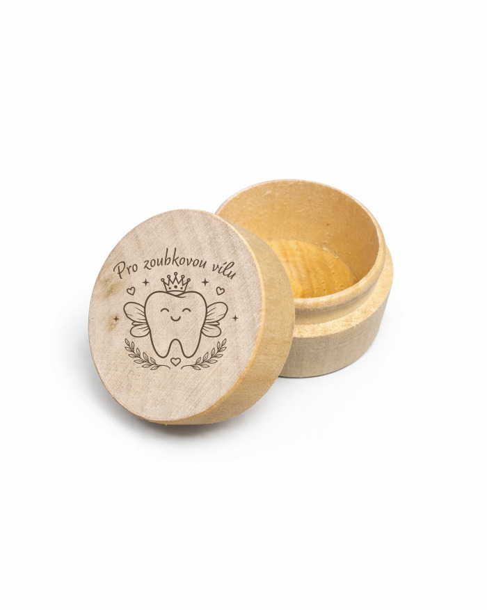 Niektoré veci sa nevyhadzujú. Prvý obrázok, prvé topánky… a aj prvý vypadnutý zúbok. Táto drevená okrúhla krabička pre zúbkovú vílu je ideálnym miestom, kde tieto malé poklady bezpečne uložíš. Pretože aj drobnosti si zaslúžia svoje miesto.
