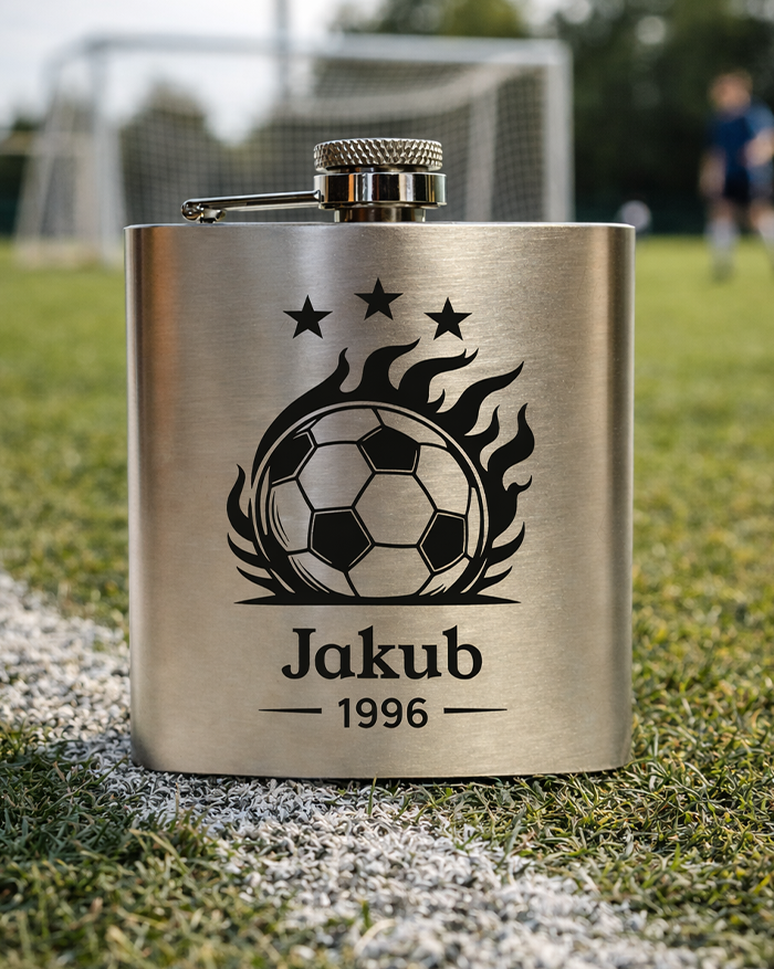 Futbal nie je len šport. Je to vášeň, emócia a životný štýl. Táto nerezová ploskačka pre milovníkov futbalu s menom a rokom je ideálna pre každého, kto má futbal v srdci. Motív lopty v plameňoch symbolizuje energiu, odhodlanie a lásku k hre.