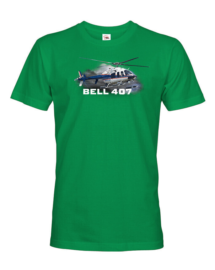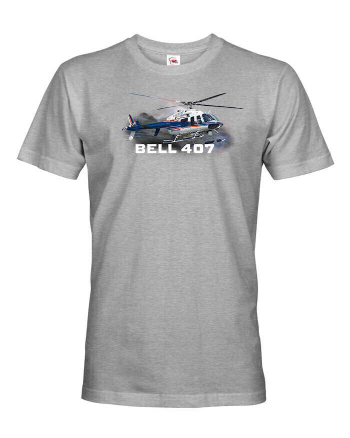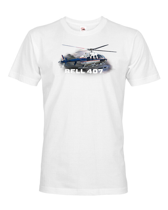 Motív Bell 407 zachytáva charakteristickú siluetu helikoptéry – kabínu, rotor a štíhly trup. Tričko jasne ukazuje tvoju vášeň pre letectvo a moderné vrtuľníky, pričom detailný motív podtrhuje dynamiku a eleganciu Bell 407.