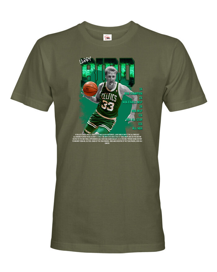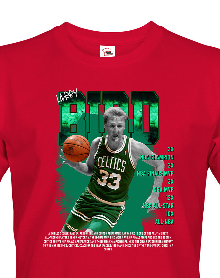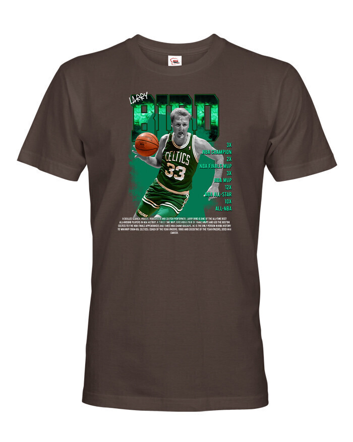 Toto štýlové pánske tričko s legendou basketbalu Larrym Birdom je ideálnou voľbou pre všetkých fanúšikov NBA a klasického basketbalu. Larry Bird, známy svojou presnou streľbou, inteligenciou na ihrisku a nezlomným súťažným duchom, je jednou z najväčších ikon v histórii NBA. Tento dizajn vyjadruje jeho odhodlanie, presnosť a vodcovské schopnosti, vďaka ktorým sa stal symbolom talentu, disciplíny a tvrdej práce. Tričko je vyrobené z mäkkého, vysoko kvalitného bavlneného materiálu, ktorý zaručuje pohodlie a odolnosť aj pri každodennom nosení. Vďaka klasickému strihu perfektne sedí a dá sa ľahko kombinovať s džínsami, šortkami alebo mikinou. Výrazný motív s portrétom Birda dodáva outfitu športový štýl a historickú energiu, ktorá osloví každého fanúšika basketbalu. Je ideálne na voľný čas, tréning, hranie basketbalu alebo sledovanie zápasov NBA. Toto tričko je tiež skvelým darčekom k narodeninám, Vianociam alebo iným sviatkom pre každého fanúšika basketbalu. Každý, kto ho nosí, prejavuje úctu jednej z najväčších legiend NBA. Nie je to len tričko – je to pocta Larrymu Birdovi, symbolu talentu, precíznosti a vášne pre hru.