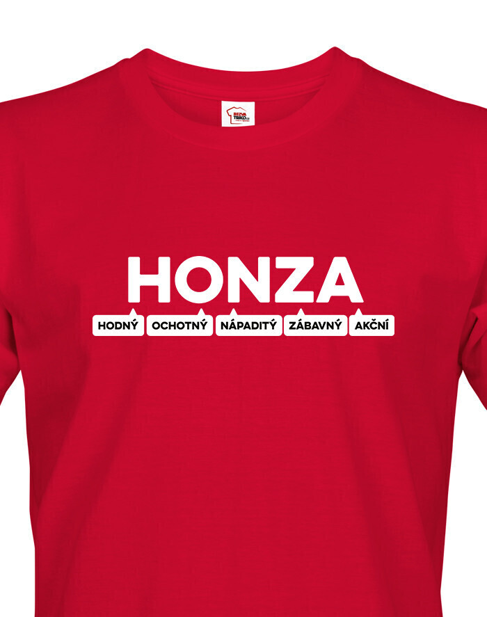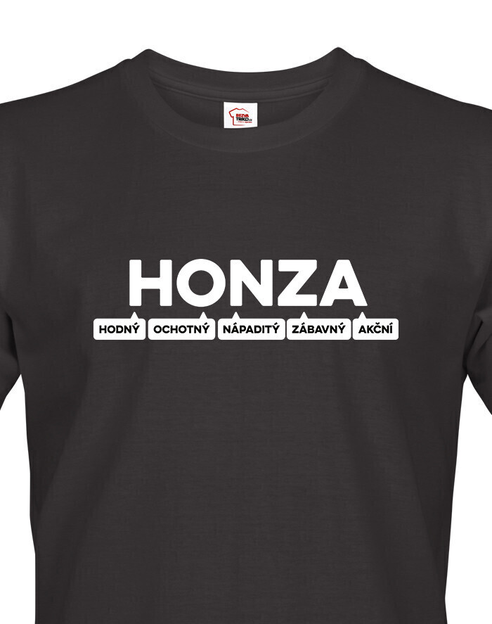 Pánske tričko s nápisom „Honza“ k meninám je ideálny darček pre mužov menom Honza, ktorí ocenia osobnú a originálnu pozornosť. Tričko je pohodlné, vyrobené z kvalitného materiálu a príjemné na nosenie celý deň, takže sa hodí na každodenné nosenie, oslavy, posedenia s priateľmi alebo voľný čas. Dizajn s vlastným menom dodáva tričku jedinečný a osobitý vzhľad, ktorý určite vyčarí úsmev obdarovanému. Je to skvelý darček k meninám, narodeninám, Vianociam alebo len tak, ak chcete niekomu urobiť radosť. Tričko sa ľahko kombinuje s džínsami, kraťasmi alebo mikinou. Hodí sa pre mužov všetkých vekových kategórií, ktorí chcú byť originálni a štýloví. Vyrazte von s komfortom, štýlom a osobným šarmom.