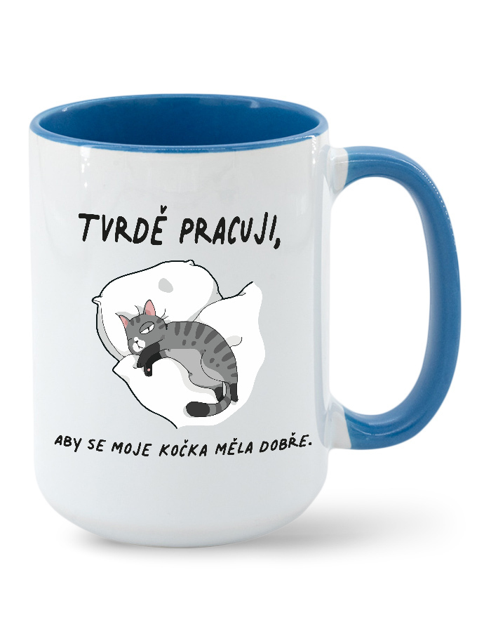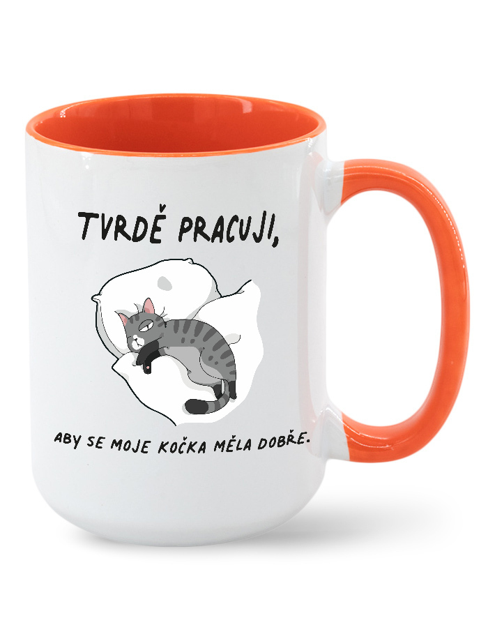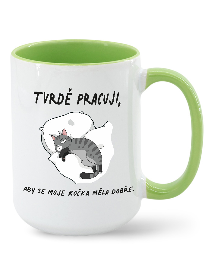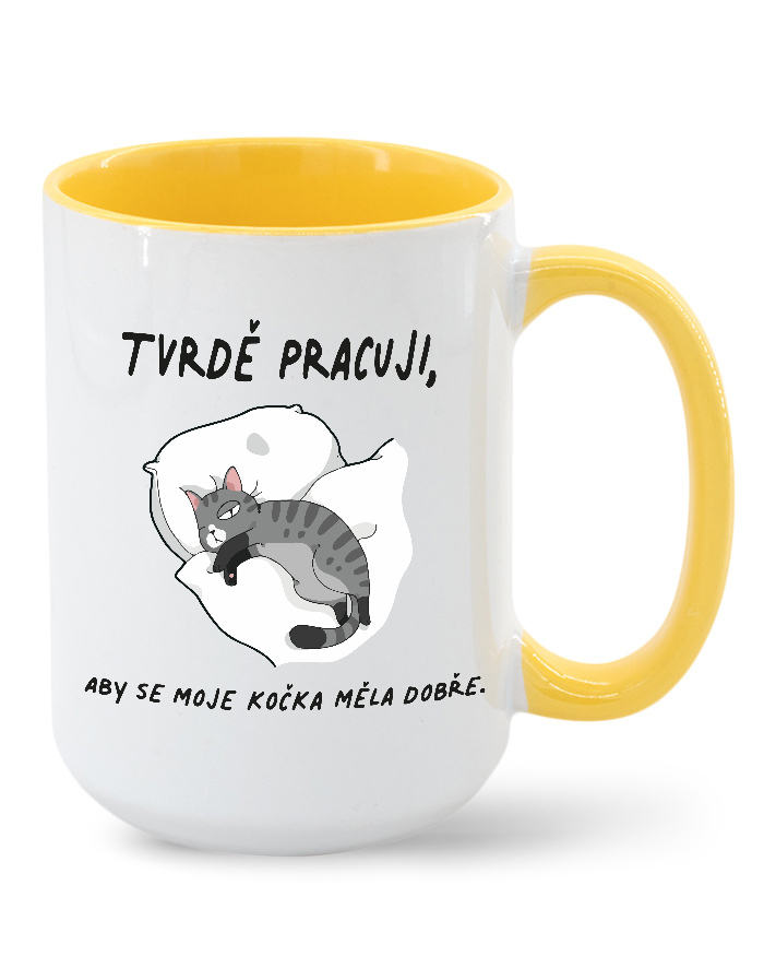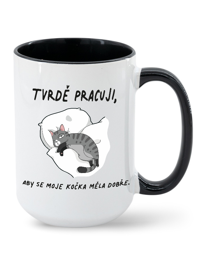 Keramický hrnček pre milovníkov mačiek. Hrnček s vtipnou potlačou "Pracujem, aby sa moja mačka mala dobre". Krásny darček pre milovníkov zvierat, najmä mačiek. Urob radosť sebe alebo svojím blízkym, ktorý majú radi mačky. Hrnček pre milovníkov mačiek si zamilujete.
