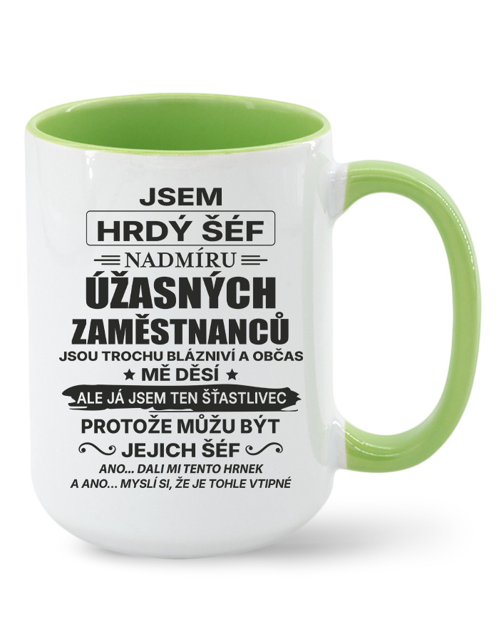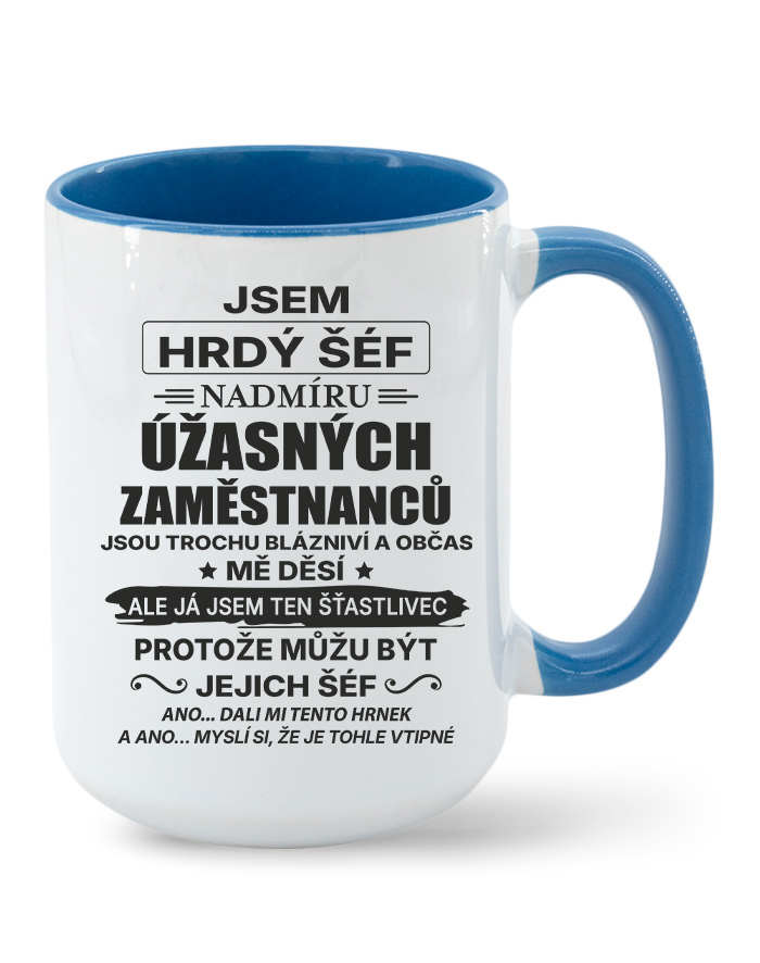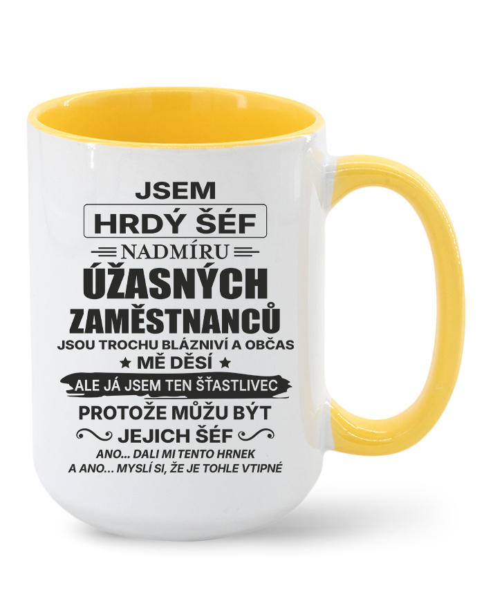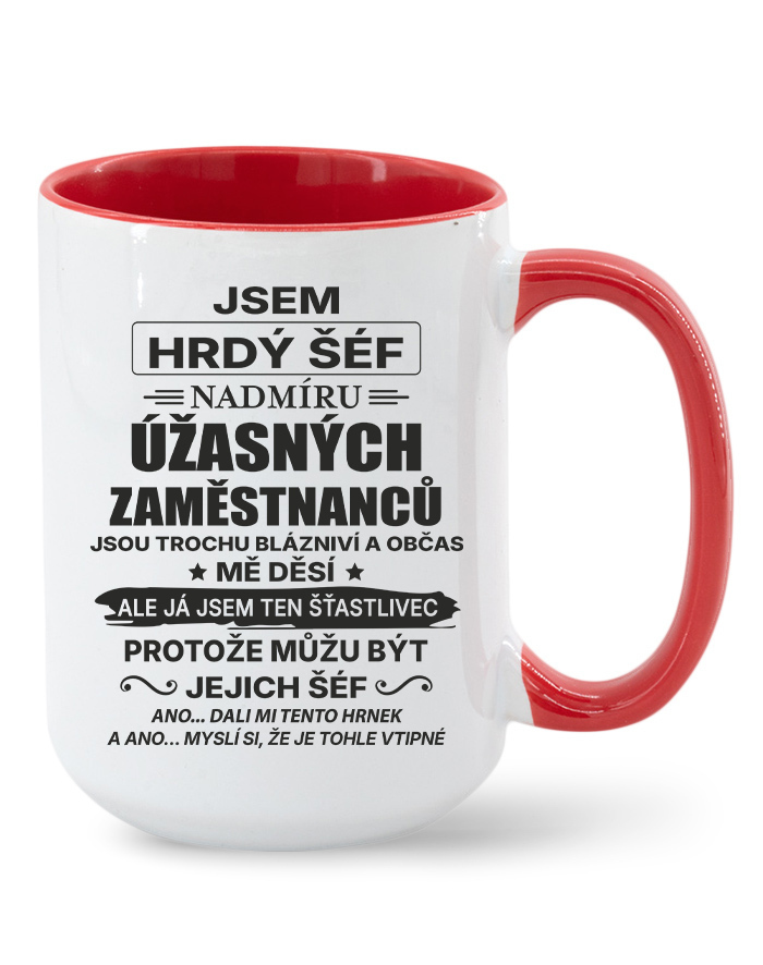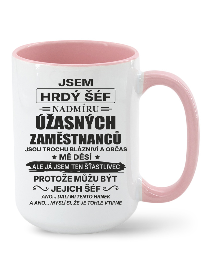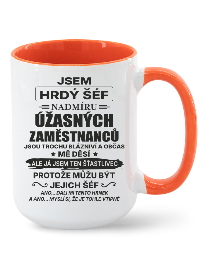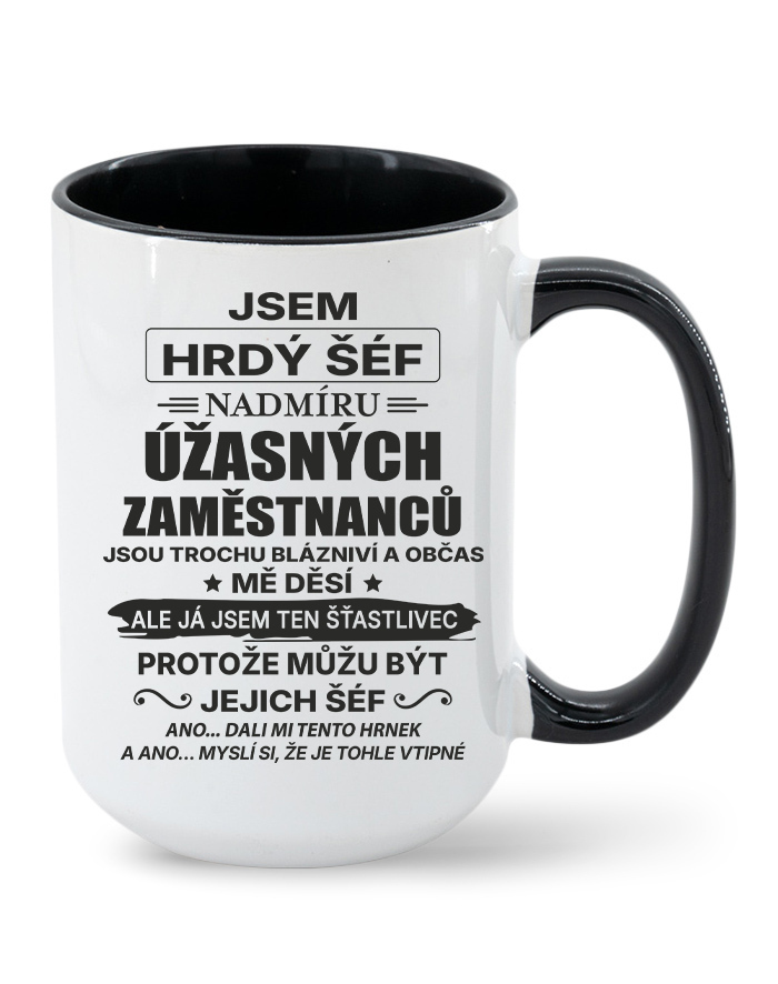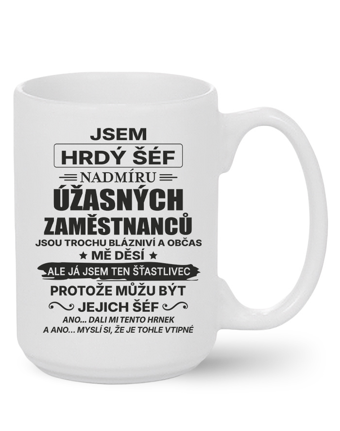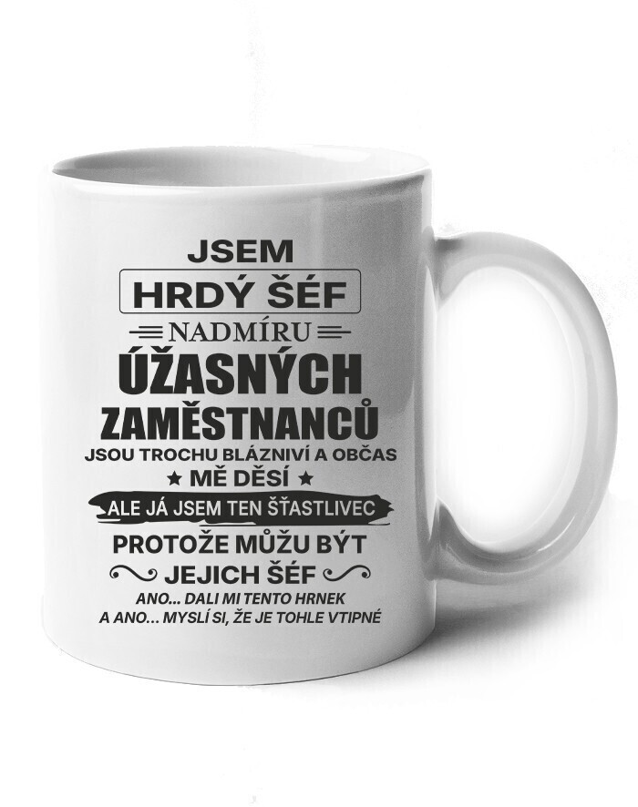Keramický hrnček s vtipným nápisom „Som hrdý šéf nadmieru úžasných zamestnancov…“ je ideálnou voľbou pre každého vedúceho, ktorý má zmysel pre humor a dokáže si urobiť srandu zo seba aj zo svojho tímu. Originálny dizajn a humorný text z neho robia perfektný darček k narodeninám, Vianociam alebo ako milé prekvapenie od kolegov.