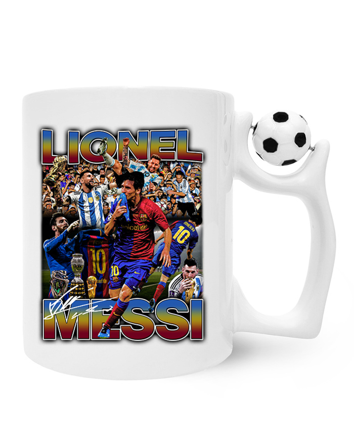 Keramický hrnek s motivem Messiho je nejen praktickým nádobím pro váš oblíbený horký nápoj, ale také výrazem vášně pro fotbal a obdivu k jednomu z největších fotbalových talentů všech dob. Motiv Lionela Messiho na tomto hrnku zobrazuje ikonického hráče. Grafika je provedena s detailní péčí a zachycuje esenci Messiho stylu a vynikajícího umění na fotbalovém hřišti. Hrnek je vyroben z kvalitní keramiky, což zaručuje nejen dlouhou životnost, ale také perfektní tepelnou izolaci pro váš oblíbený nápoj. Jeho ergonomický tvar a pohodlná ucha umožňují snadné držení a pití, což ho činí ideálním společníkem pro každý okamžik vašeho dne. Přidejte trochu fotbalového kouzla do vaší každodennosti s keramickým hrnkem s motivem Messiho. Buďte součástí fotbalové legendy a nechte svůj šálek každé ráno ozdobit obličej jednoho z největších hráčů v historii.