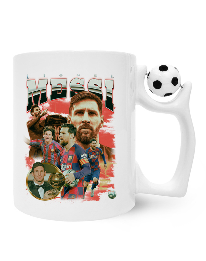 Keramický hrnek s motivem Messiho je nejen praktickým nádobím pro váš oblíbený horký nápoj, ale také výrazem vášně pro fotbal a obdivu k jednomu z největších fotbalových talentů všech dob. Motiv Lionela Messiho na tomto hrnku zobrazuje ikonického hráče. Grafika je provedena s detailní péčí a zachycuje esenci Messiho stylu a vynikajícího umění na fotbalovém hřišti. Hrnek je vyroben z kvalitní keramiky, což zaručuje nejen dlouhou životnost, ale také perfektní tepelnou izolaci pro váš oblíbený nápoj. Jeho ergonomický tvar a pohodlná ucha umožňují snadné držení a pití, což ho činí ideálním společníkem pro každý okamžik vašeho dne. Přidejte trochu fotbalového kouzla do vaší každodennosti s keramickým hrnkem s motivem Messiho. Buďte součástí fotbalové legendy a nechte svůj šálek každé ráno ozdobit obličej jednoho z největších hráčů v historii.