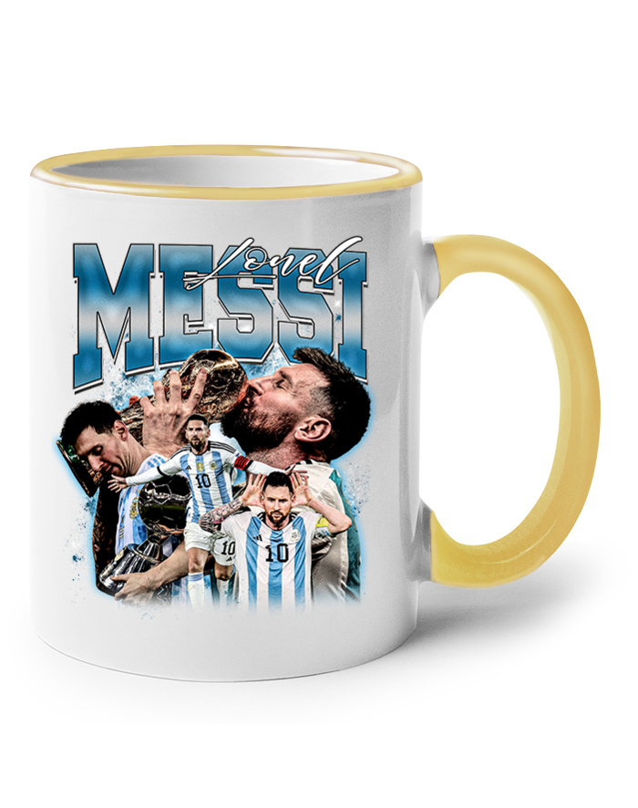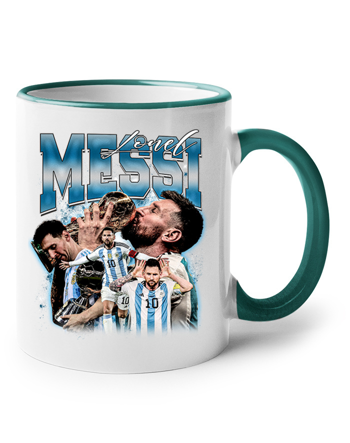 Keramický hrnek s motivem Messiho je nejen praktickým nádobím pro váš oblíbený horký nápoj, ale také výrazem vášně pro fotbal a obdivu k jednomu z největších fotbalových talentů všech dob. Motiv Lionela Messiho na tomto hrnku zobrazuje ikonického hráče. Grafika je provedena s detailní péčí a zachycuje esenci Messiho stylu a vynikajícího umění na fotbalovém hřišti. Hrnek je vyroben z kvalitní keramiky, což zaručuje nejen dlouhou životnost, ale také perfektní tepelnou izolaci pro váš oblíbený nápoj. Jeho ergonomický tvar a pohodlná ucha umožňují snadné držení a pití, což ho činí ideálním společníkem pro každý okamžik vašeho dne. Přidejte trochu fotbalového kouzla do vaší každodennosti s keramickým hrnkem s motivem Messiho. Buďte součástí fotbalové legendy a nechte svůj šálek každé ráno ozdobit obličej jednoho z největších hráčů v historii.
