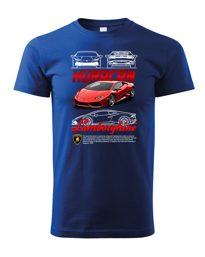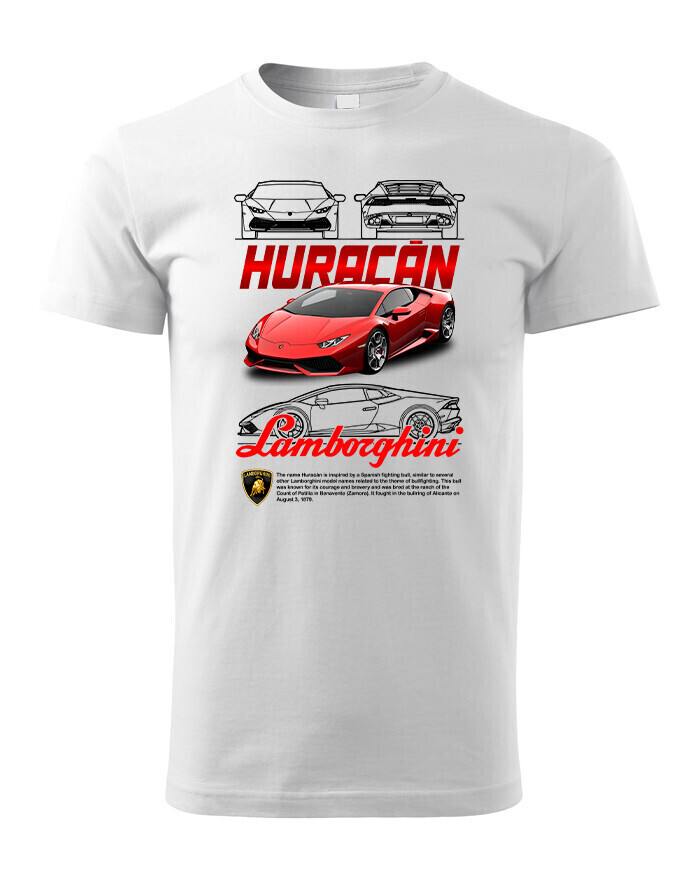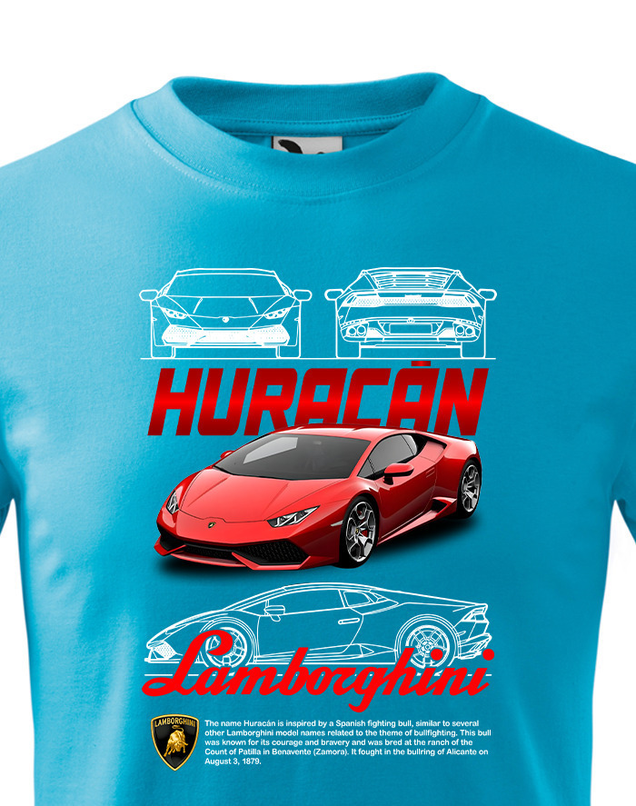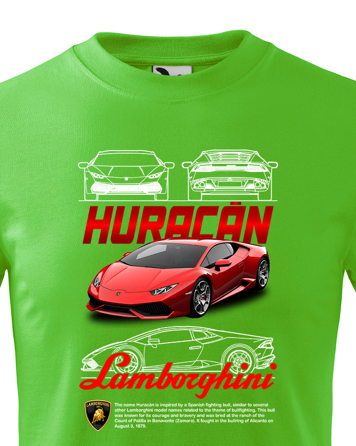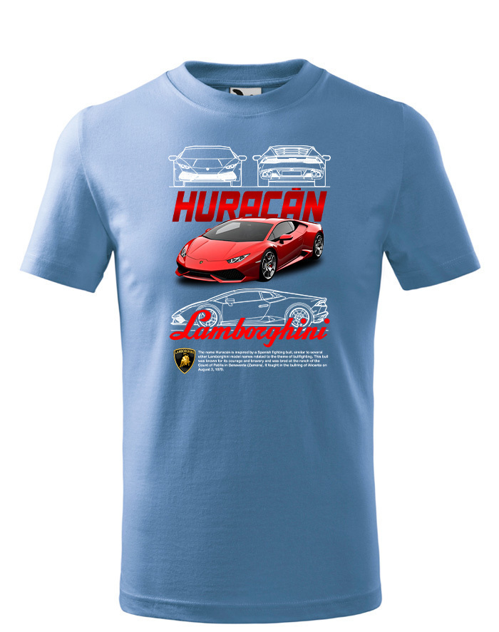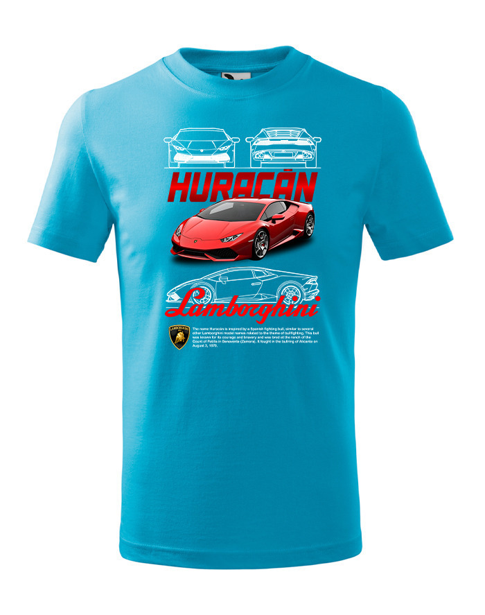 Hľadáte detské tričko s potlačou Lamborghini Huracan pre malých milovníkov áut? Toto detské tričko s motívom Lamborghini Huracan je navrhnuté pre deti, ktoré obdivujú luxusné športové vozidlá a chcú ukázať svoju vášeň pre rýchle autá už od mala. Ak máte vo svojom okolí dieťa, ktoré miluje autá a rado sa pochváli svojím obľúbeným vozidlom, potom je toto tričko tou správnou voľbou. Lamborghini Huracan je športové auto talianskej automobilky Lamborghini, ktoré sa stalo veľmi populárnym vďaka svojmu atraktívnemu vzhľadu, výkonnému motoru a skvelým jazdným vlastnostiam. Práve preto si získalo obľubu nielen medzi dospelými, ale aj medzi malými fanúšikmi automobilov po celom svete. Detské tričko sa perfektne hodí na každodenné nosenie, do školy, škôlky, na ihrisko aj na rodinné výlety. Využiť ho môžete aj na oslavy, stretnutia s kamarátmi alebo vo voľnom čase. Veľkou výhodou je jeho univerzálnosť, pretože sa jednoducho kombinuje s kraťasmi, džínsami alebo mikinou. Ak hľadáte zaujímavé, štýlové a pohodlné detské tričko, tento model je ideálnou voľbou. Na prednej strane sa nachádza detailne spracovaná potlač automobilu Lamborghini Huracan, ktorá zobrazuje vozidlo z rôznych uhlov a zaujme na prvý pohľad každého malého fanúšika áut.
