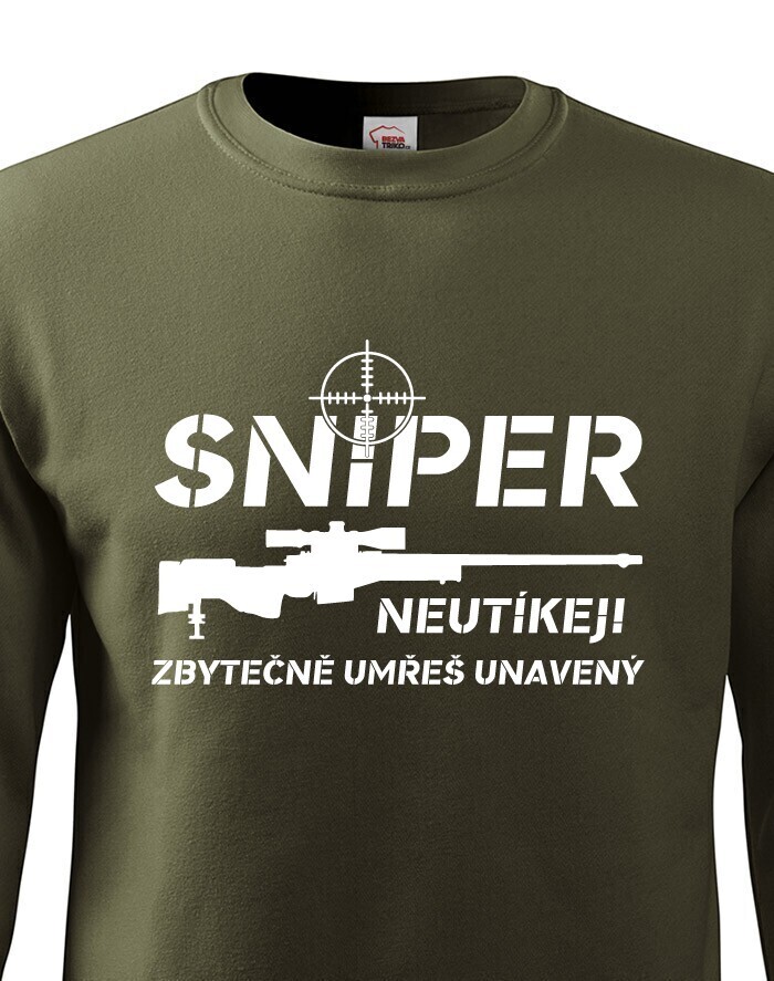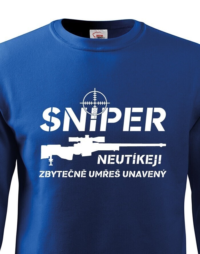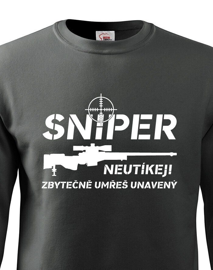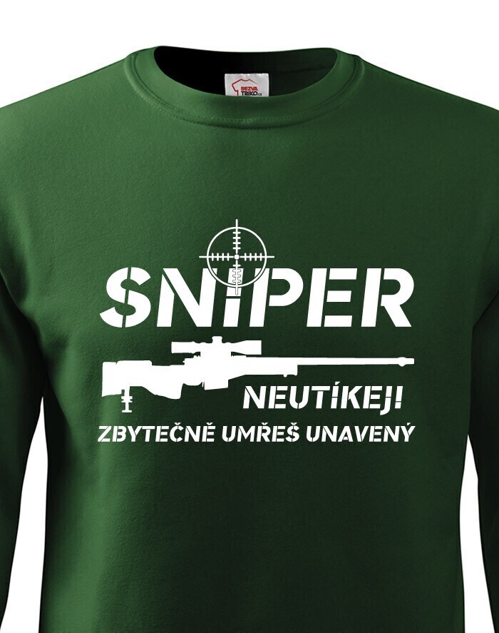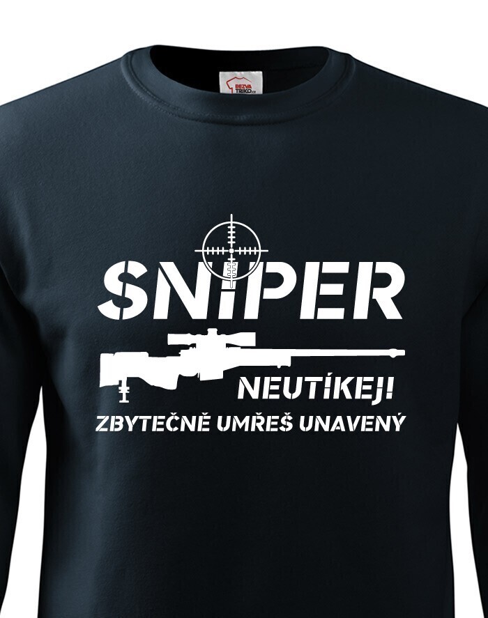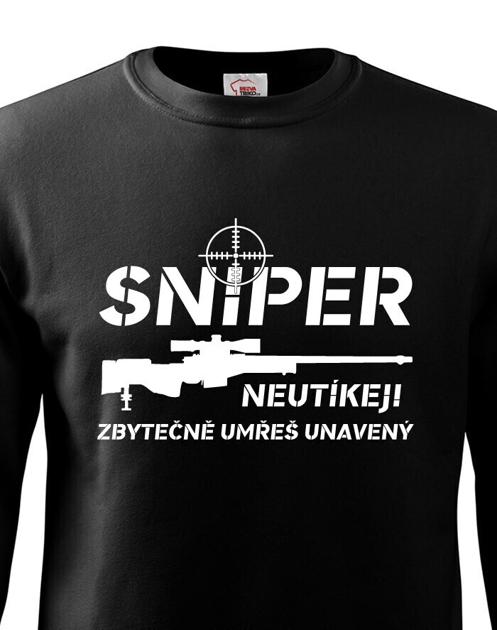 Ak budeš mať niekedy v živote toľko smoly, že sa dostaneš do mušky snipera, rozhodne sa neodporúča utekať. Tričko "Sniper, neutekaj, zbytočne umrieš unavený" bude ideálny pre všetkých military nadšencov a hráčov počítačových hier, ktorí chcú mať v šatníku originálne tričko s potlačou.
