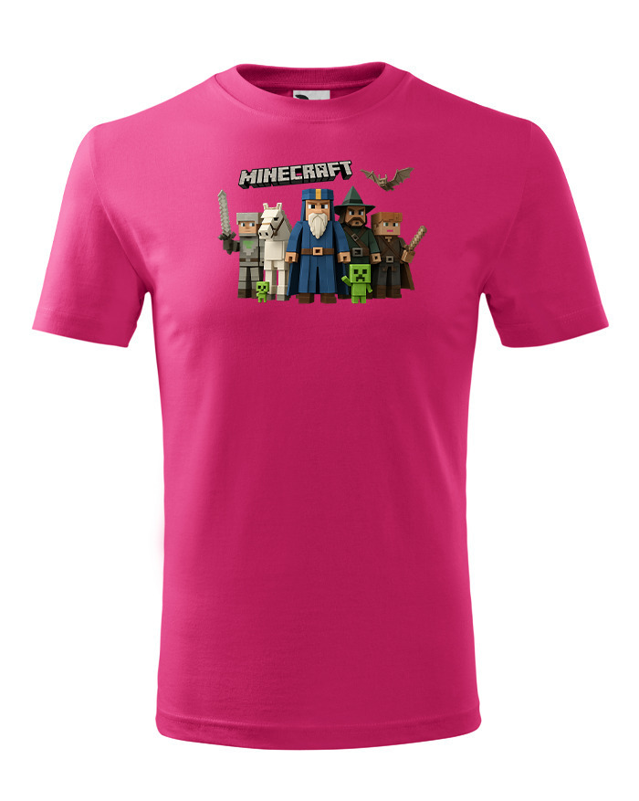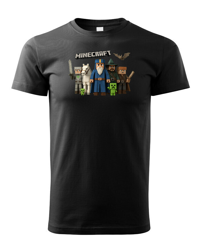 Tričko zdobí ikonické postavičky z Minecraftu a výrazný nápis, ktorý hneď ukáže, kto je fanúšikom tejto legendárnej hry. Motív je farebný, hravý a ideálny na každodenné nosenie aj hranie s kamarátmi.