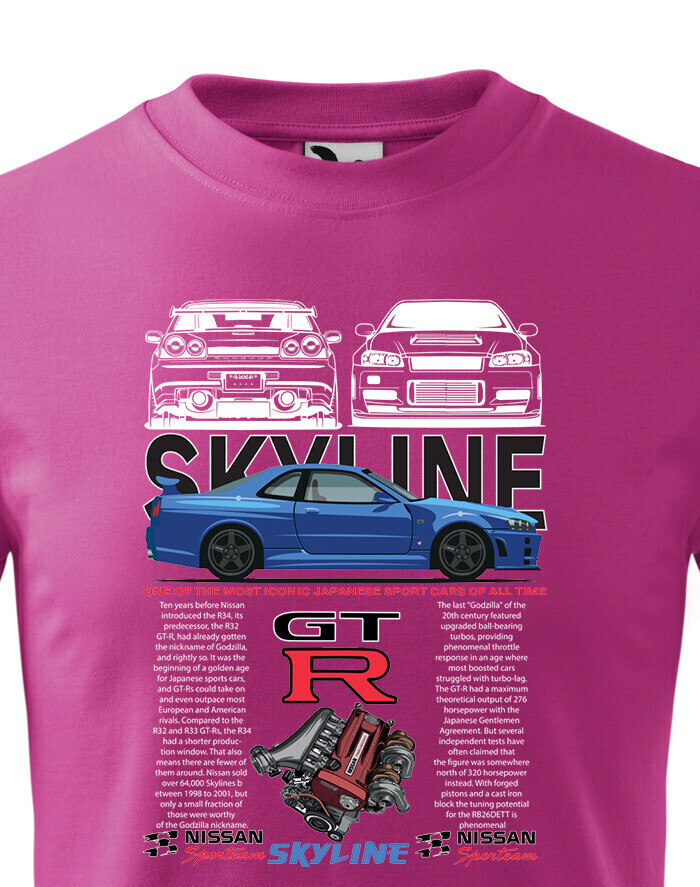 Prezrieť hodnotenie na Heureka.skVstúpte do sveta automobilových dobrodružstiev a športovej vášne s naším detským tričkom s potlačou legendárneho vozidla - Nissan Skyline GTR. Toto tričko nie je len oblečením, je to vstupenka do sveta rýchlosti a inovácií pre každé malé dobrodruha, ktorý túži po vzrušujúcom spojení medzi automobilovým dizajnom a výkonom. S precíznym designom a ohromujúcou potlačou je toto tričko ideálnym darčekom na narodeniny alebo Vianoce pre každé dieťa, ktoré má rado rýchle a štýlové autá. Potlač s detailne zobrazeným Nissan Skyline GTR nielenže zdobí prednú časť trička, ale aj prenáša vášnivý príbeh za každým krivkom tohto automobilového šperku. Výrazný dizajn umožňuje deťom vyjadriť svoju lásku k automobilom už od najútlejších rokov a zároveň sa cítiť štýlovo. Vyrobené z mäkkých a pohodlných materiálov, toto tričko je skvelým spoločníkom pre každodenné hranie, šantenie s kamarátmi alebo objavovanie sveta. Jeho univerzálny strih zabezpečuje pohodlie a voľnosť pohybu, čo z neho robí ideálne tričko pre aktívne deti. S rôznymi farebnými variantmi tričiek v našej ponuke, môžete vybrať také, ktoré najlepšie vyhovuje osobnosti vášho malého automobilového nadšenca. Od veselých a hravých farieb po klasickejšie odtiene, naše tričká sú prispôsobiteľné každému štýlu. Darujte svojmu dieťaťu viac než len tričko - darujte mu malý kúsok automobilovej histórie s týmto detským tričkom Nissan Skyline GTR. Každé dieťa si zaslúži začať svoju cestu automobilovou vášňou štýlovo a s nadšením.