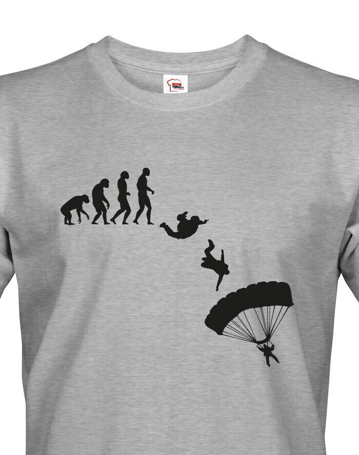 Prezrieť hodnotenie na Heureka.skPánské tričko pre parašutistov s potlačou Evolúcie parašutistu. Tričko je vhodné pre parašutistu, ktorý miluje voľný pád. Parašutizmus patrí medzi letecké športy a je iba pre poriadných odvážlicov. Ukážte svojím priateľom a blízkym, že odvaha vám rozhodne nechýba. Motív padne úplne každému. Tričko dokonale vystihuje podstatu športu a pre veľa ľudí je tento šport srdcovou záležitosťou. Tričko urobí radosť na narodeniny, Vianoce alebo iba tak pre radosť.