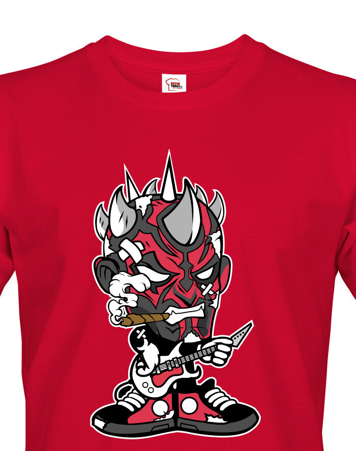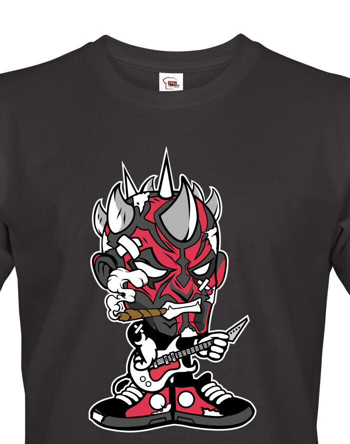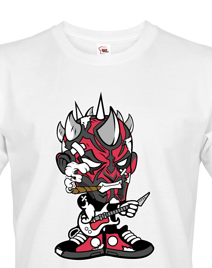 Ponorte sa do vesmíru zábavy a filmového nadšenia s týmto úžasným tričkom s potlačou, ktoré prináša paródiu na jednu z najikonickejších postáv filmového sveta. Ak milujete Star Wars a neodolateľný humor, toto tričko je pre vás skvelou voľbou. Známy Sith Lord Darth Maul dostal nový "look", ktorý určite nenechá nikoho na pochybách o jeho zmysle pre humor. Jeho typický tvrdý a hrozivý výraz je nahradený úsmevom, ktorý vám rozhodne vyvolá úsmev na tvári. Tento design je dokonalou kombináciou vážnej postavy a nečakaného komického momentu. Toto tričko nie je len skvelým oblečením pre voľný čas, ale je tiež vhodné pre rôzne príležitosti. Bez ohľadu na to, či idete do práce alebo sa stretávate s kamarátmi, tričko pridá vašej nálade štipku humoru a excentričnosti. Ak hľadáte skvelý darček pre milovníka Star Wars alebo filmov všeobecne, toto tričko je bezpochyby výbornou voľbou. Je to zábavný spôsob, ako prejaviť svoju lásku k filmovému svetu a zároveň získať reakcie plné smiechu od každého, kto vás uvidí. Nenechajte si ujsť príležitosť vyjadriť svoju lásku k filmom a humoru prostredníctvom tohto výnimočného trička s potlačou paródie na Darth Maula. Nech už preferujete čiernu, bielu alebo inú farbu, tento design bude určite vyčnievať v každej situácii. Objednajte si ho ešte dnes a nechajte silu komična pôsobiť!