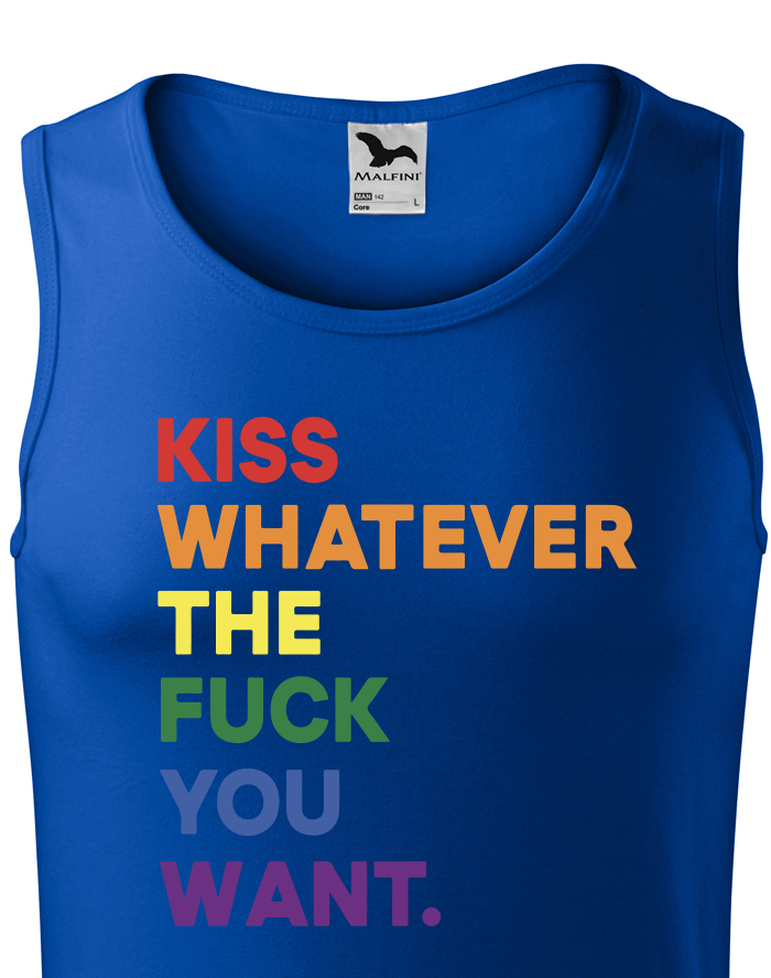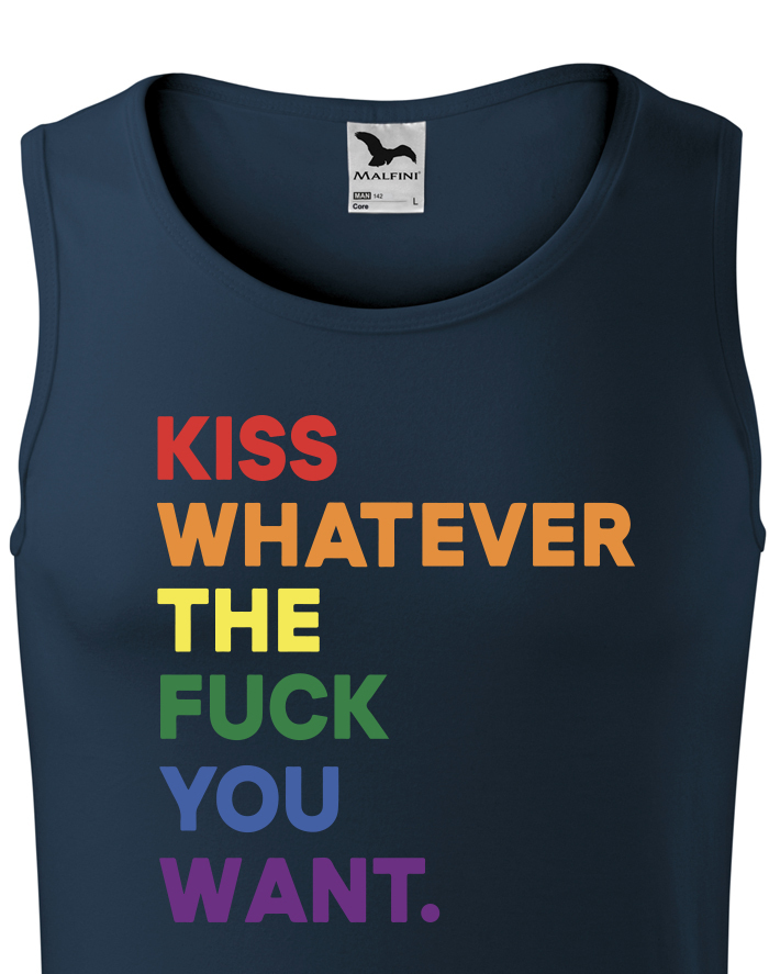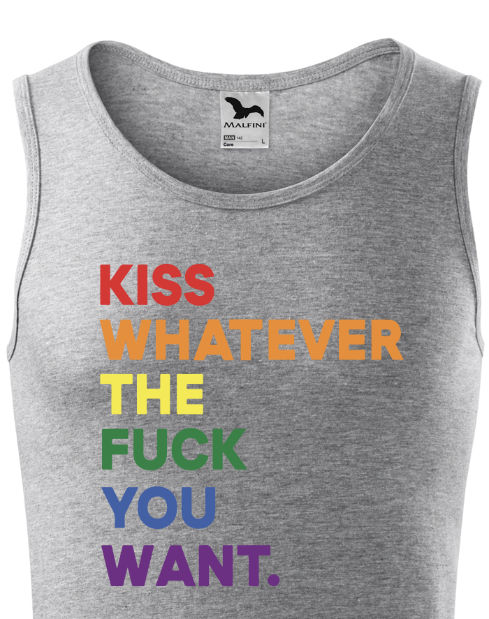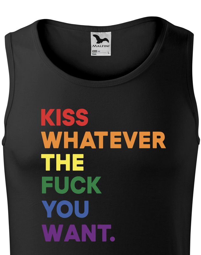 Pánské tričko s potlačou Kiss whatever the fuck you want vyjadrí stručne a jednoducho vaše pocity. Láska je jednoducho láska a nezáleží na tom, či milujete opačné pohlavie alebo to isté. Noste toto tričko s hrdosťou. Skvelý darček na narodeniny alebo Vianoce. Poteš svojích blízkych týmto tričkom.