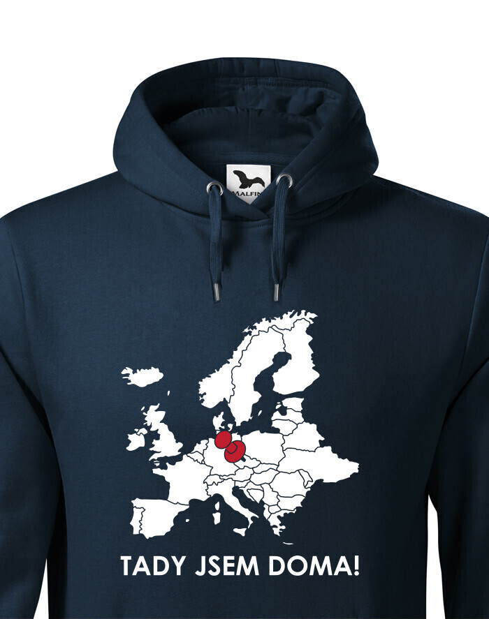 Každý cestovatel to už zažil, na cestách se místní vždy vyptávají odkud to vlastně jste. Tahle cestovatelská mikina s potiskem "Tady jsem doma!" pomůže na cestách jasně a jednoduše vysvětlit, kde je váš domov. Mikina je jako dělaná pro každého turistu a cestovatele k narozeninám nebo vánocům.