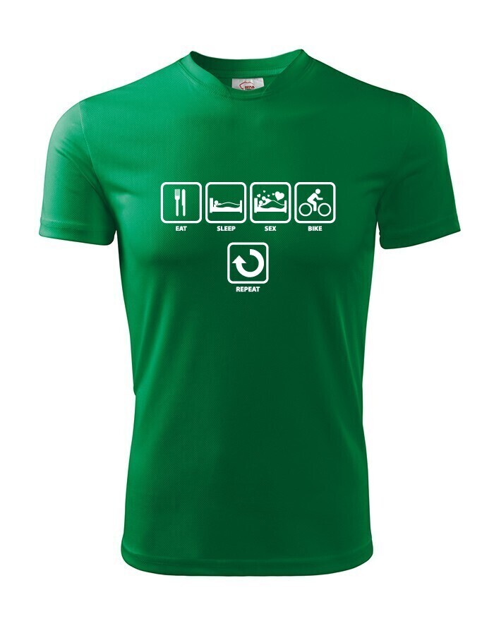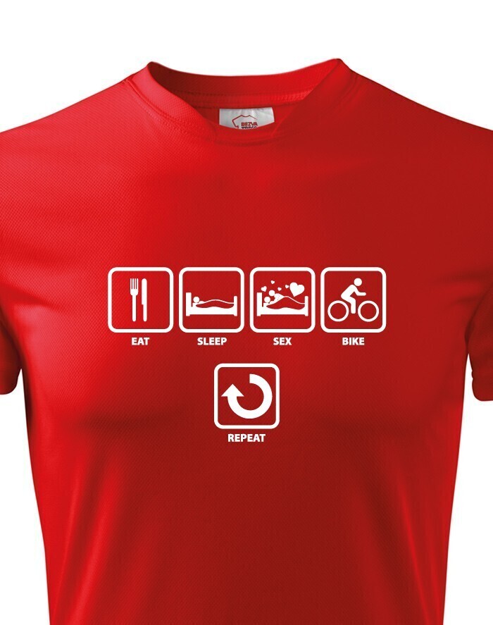Tričko s potlačou cyklistov EAT, SLEEP, SEX, BIKE, REPEAT