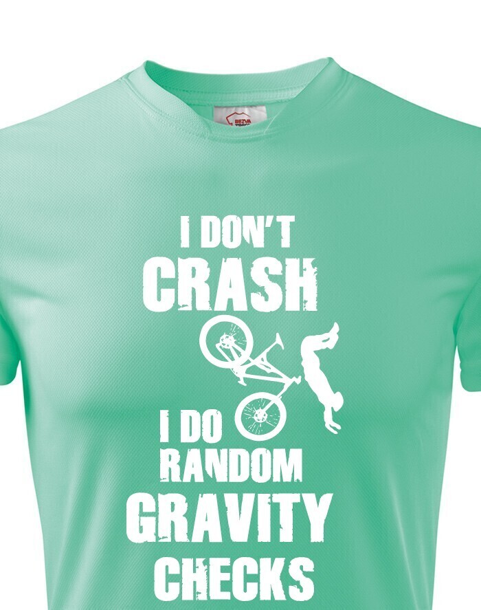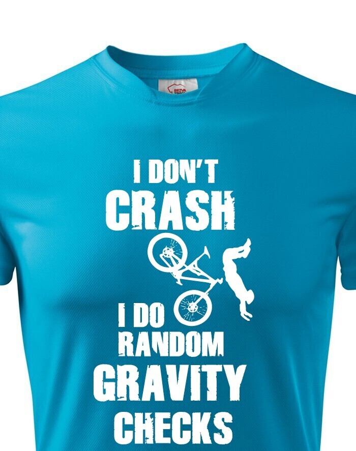 Tričko s potlačou I DONT CRASH, I DO RANDOM GRAVITY CHECK dokonale vystihuje podstatu športu. Na každý pád je potrebné sa pozerať ako na súčasť cesty dopredu. Cyklo tričko s potlačou bude skvelý darček pre všetkých nadšencov horskej cyklistiky a MTB. Avšak prajeme ideálne čo najmenej náhodných testov gravitácie. :)