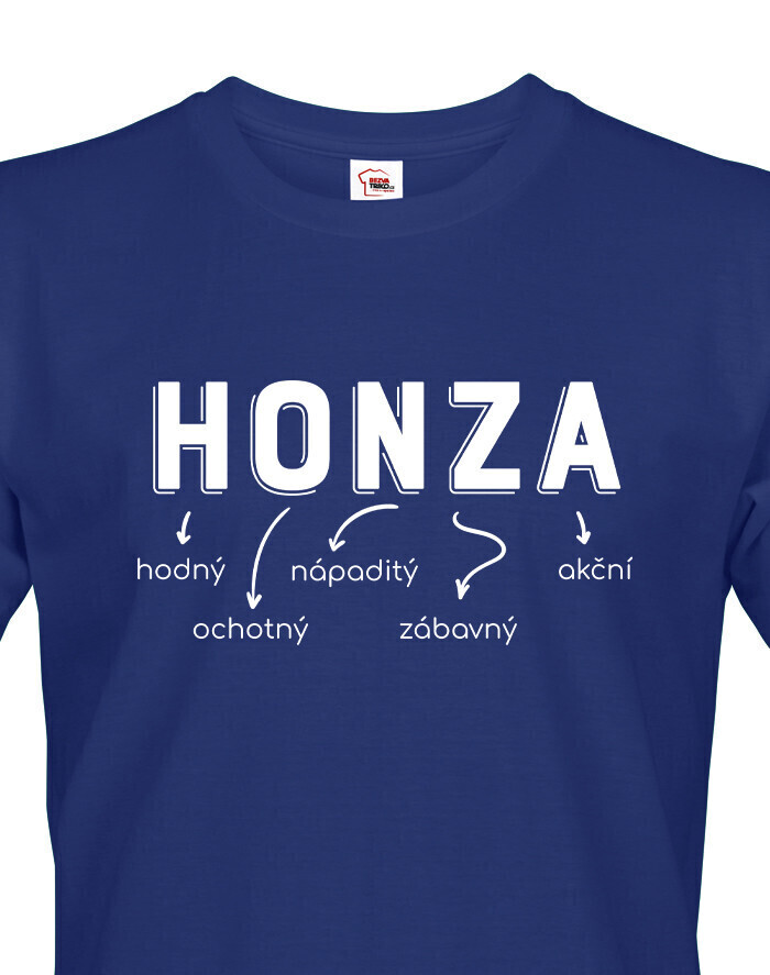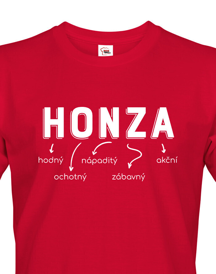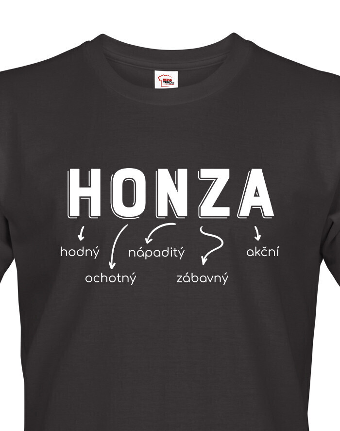 Pánske tričko s nápisom „Honza“ k meninám je ideálny darček pre mužov menom Honza, ktorí ocenia osobnú a originálnu pozornosť. Tričko je pohodlné, vyrobené z kvalitného materiálu a príjemné na nosenie celý deň, takže sa hodí na každodenné nosenie, oslavy, posedenia s priateľmi alebo voľný čas. Dizajn s vlastným menom dodáva tričku jedinečný a osobitý vzhľad, ktorý určite vyčarí úsmev obdarovanému. Je to skvelý darček k meninám, narodeninám, Vianociam alebo len tak, ak chcete niekomu urobiť radosť. Tričko sa ľahko kombinuje s džínsami, kraťasmi alebo mikinou. Hodí sa pre mužov všetkých vekových kategórií, ktorí chcú byť originálni a štýloví. Vyrazte von s komfortom, štýlom a osobným šarmom.