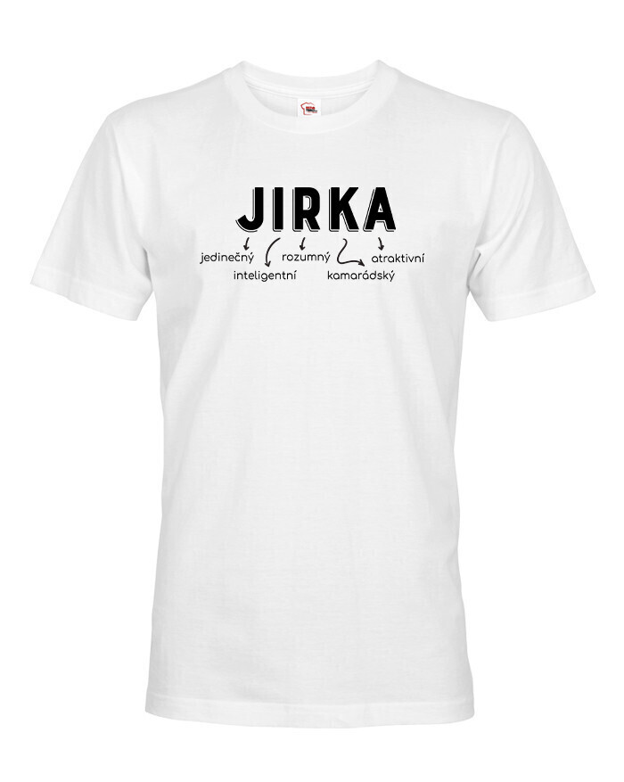 Pánske tričko s nápisom „Jirka“ k meninám je skvelý darček pre mužov menom Jirka, ktorí ocenia osobnú a originálnu pozornosť. Tričko je pohodlné, vyrobené z kvalitného materiálu a príjemné na nosenie celý deň, takže sa hodí na každodenné nosenie, oslavy, posedenia s priateľmi alebo voľný čas. Dizajn s vlastným menom dodáva tričku jedinečný a osobitý vzhľad, ktorý určite vyčarí úsmev obdarovanému. Je to ideálny darček k meninám, narodeninám, Vianociam alebo len tak, ak chcete niekomu urobiť radosť. Tričko sa ľahko kombinuje s džínsami, kraťasmi alebo mikinou. Hodí sa pre mužov všetkých vekových kategórií, ktorí chcú byť originálni a štýloví. Vyrazte von s komfortom, štýlom a osobným šarmom.