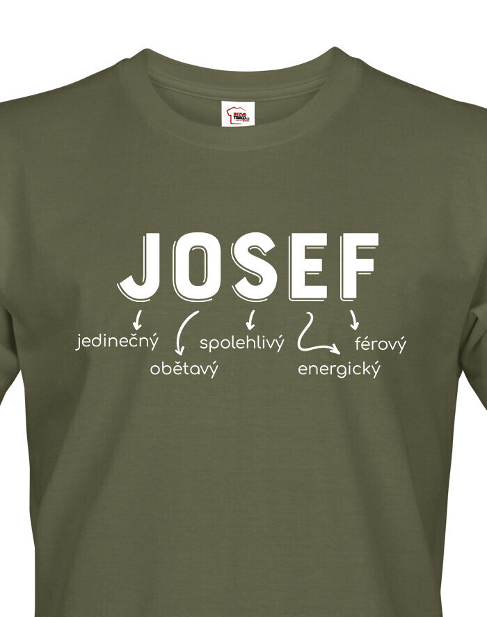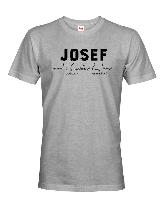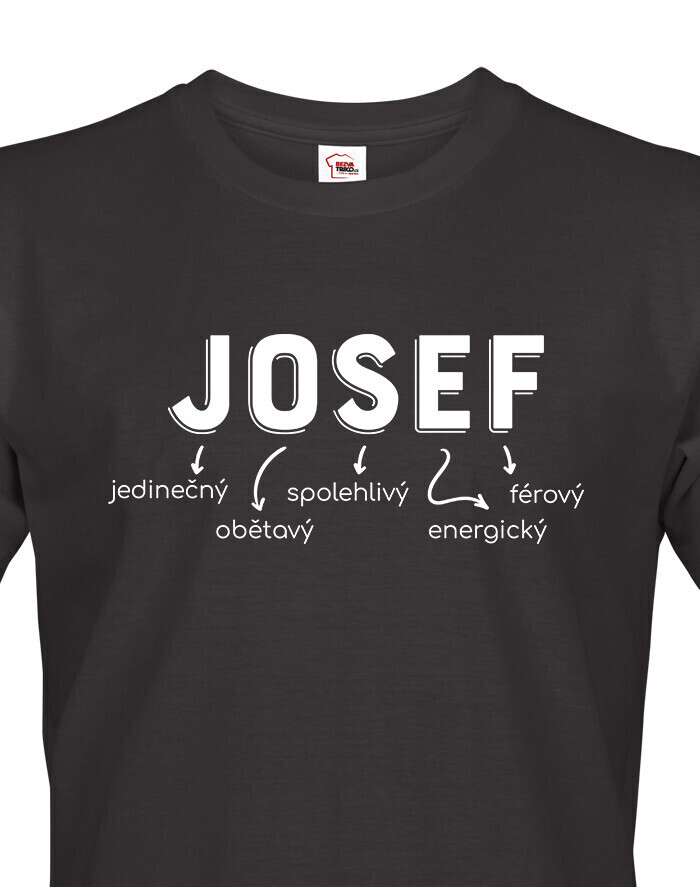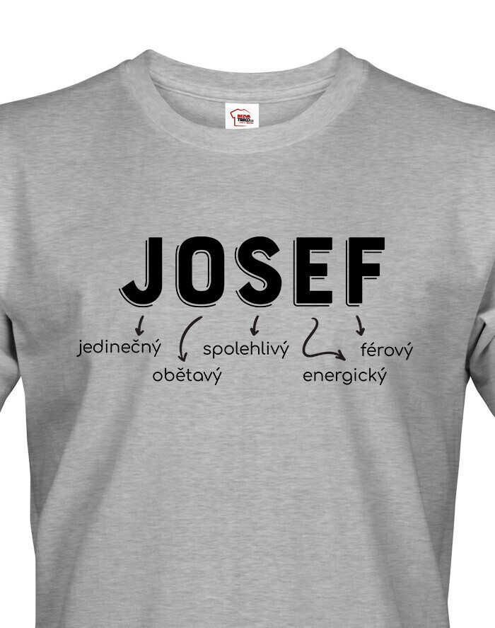 Pánske tričko s nápisom „Josef“ k meninám je ideálny darček pre mužov menom Josef, ktorí ocenia osobnú a originálnu pozornosť. Tričko je pohodlné, vyrobené z kvalitného materiálu a príjemné na nosenie celý deň, takže sa hodí na každodenné nosenie, oslavy, posedenia s priateľmi alebo voľný čas. Dizajn s vlastným menom dodáva tričku jedinečný a osobitý vzhľad, ktorý určite vyčarí úsmev obdarovanému. Je to perfektný darček k meninám, narodeninám, Vianociam alebo len tak, ak chcete niekomu urobiť radosť. Tričko sa ľahko kombinuje s džínsami, kraťasmi alebo mikinou. Hodí sa pre mužov všetkých vekových kategórií, ktorí chcú byť originálni a štýloví. Vyrazte von s komfortom, štýlom a osobným šarmom.