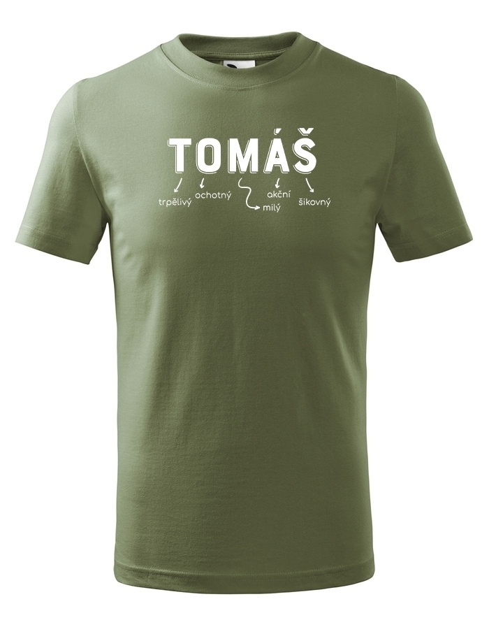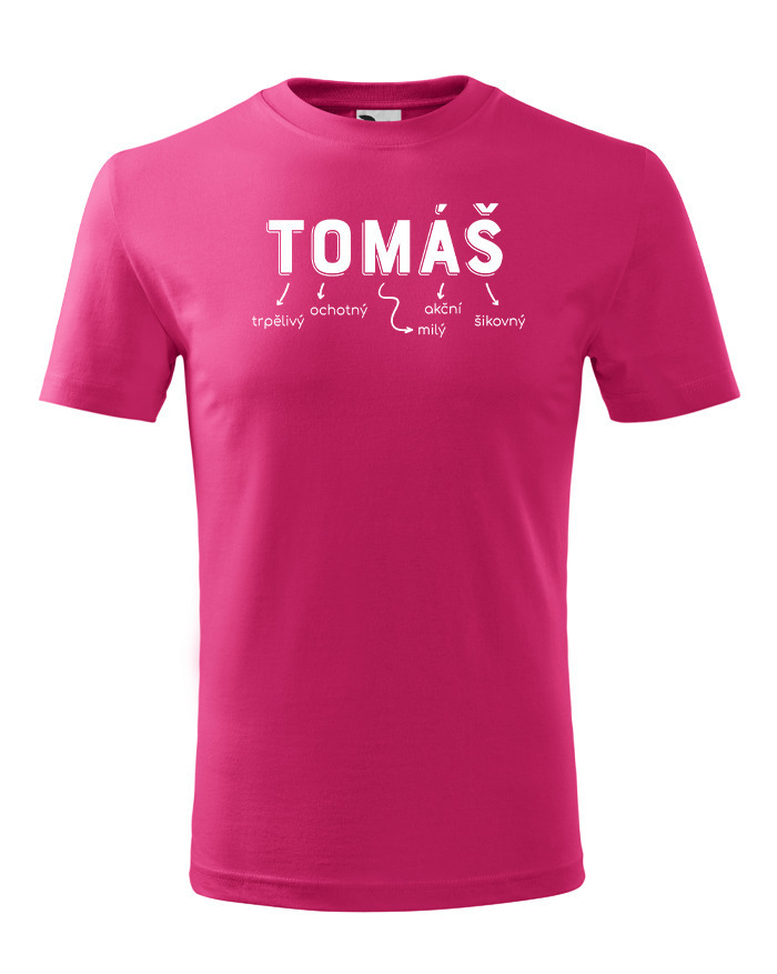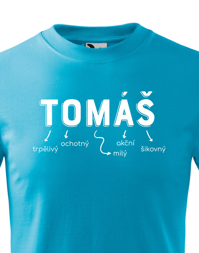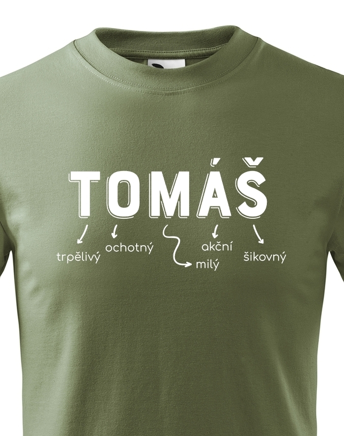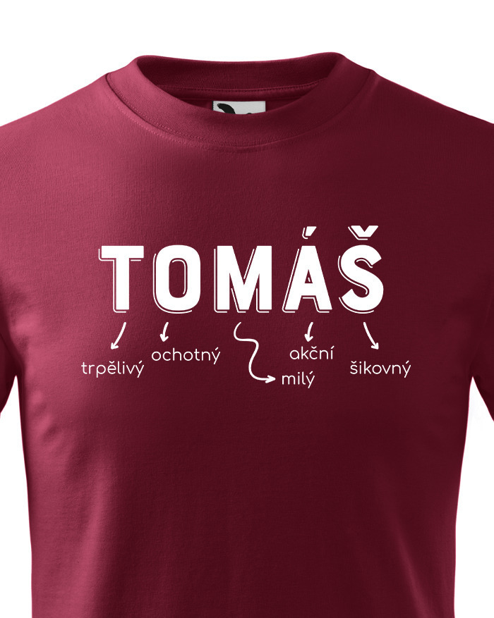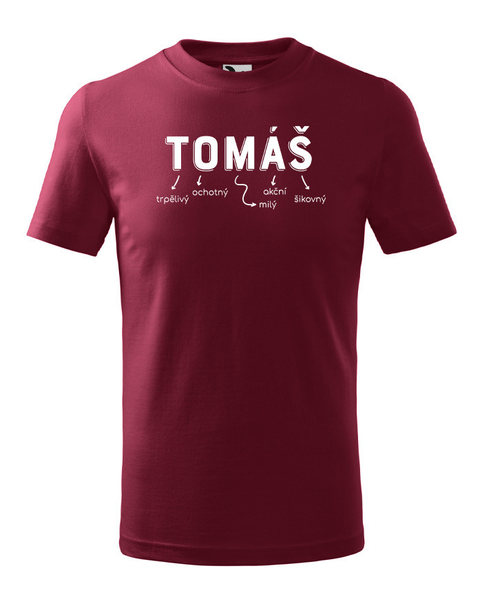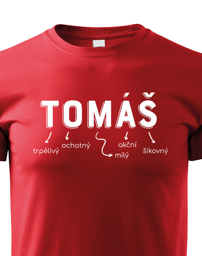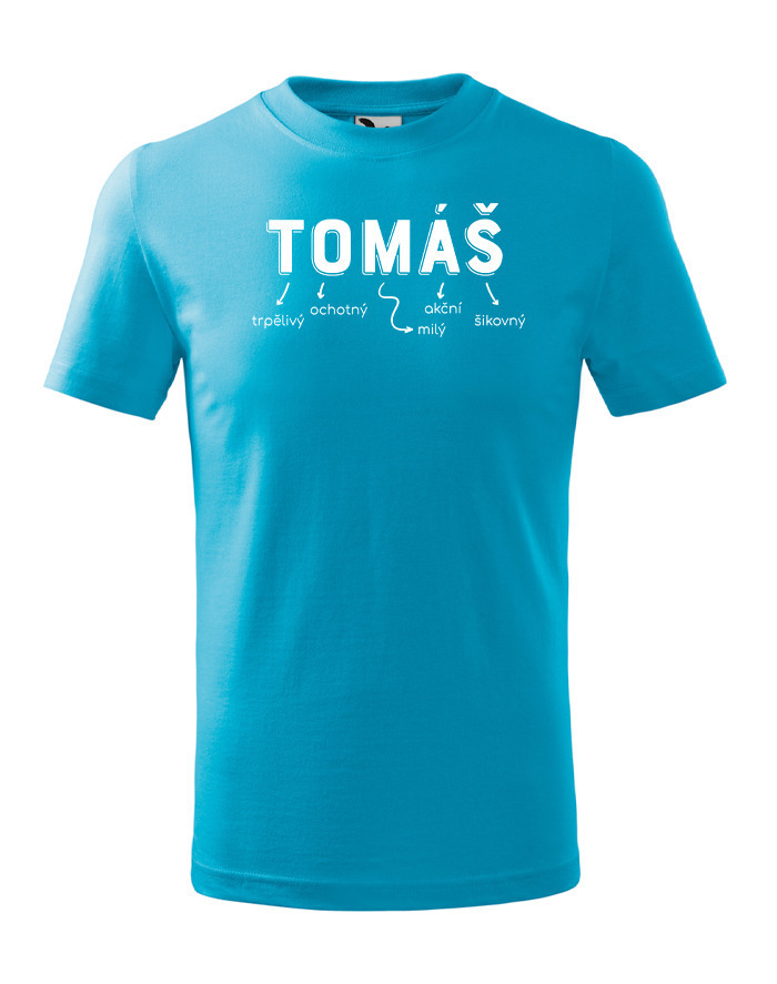 Dětské tričko s nápisem „Tomáš“ k svátku je skvělým dárkem pro kluka jménem Tomáš, který má rád originální a osobní věci. Tričko je pohodlné, vyrobené z kvalitního a příjemného materiálu, který je šetrný k dětské pokožce a zajišťuje komfort po celý den. Hodí se jak na běžné nošení do školy či školky, tak na oslavy, rodinné akce, výlety nebo volný čas.