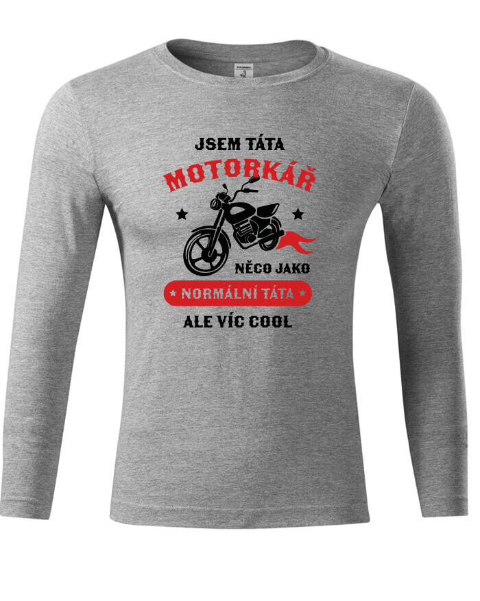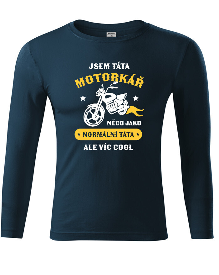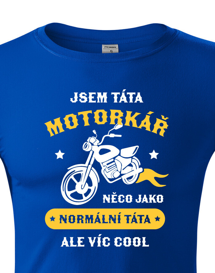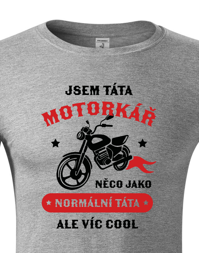 Tričko pre každého motorkárskeho tata. Potlač na tričko "Som tato motorkár, niečo ako normálny tato, ale viac COOL" urobí radosť každému motorkárovi. Ak hľadáte originálny nápad na darček, tričko s potlačou urobí radosť. Na tričko vám radi dotlačíme vek alebo meno, stačí sa ozvať.