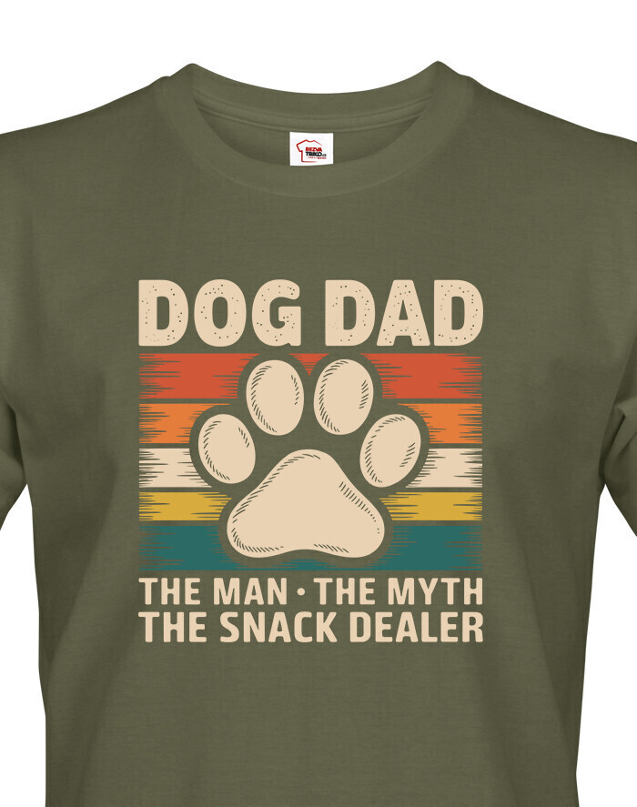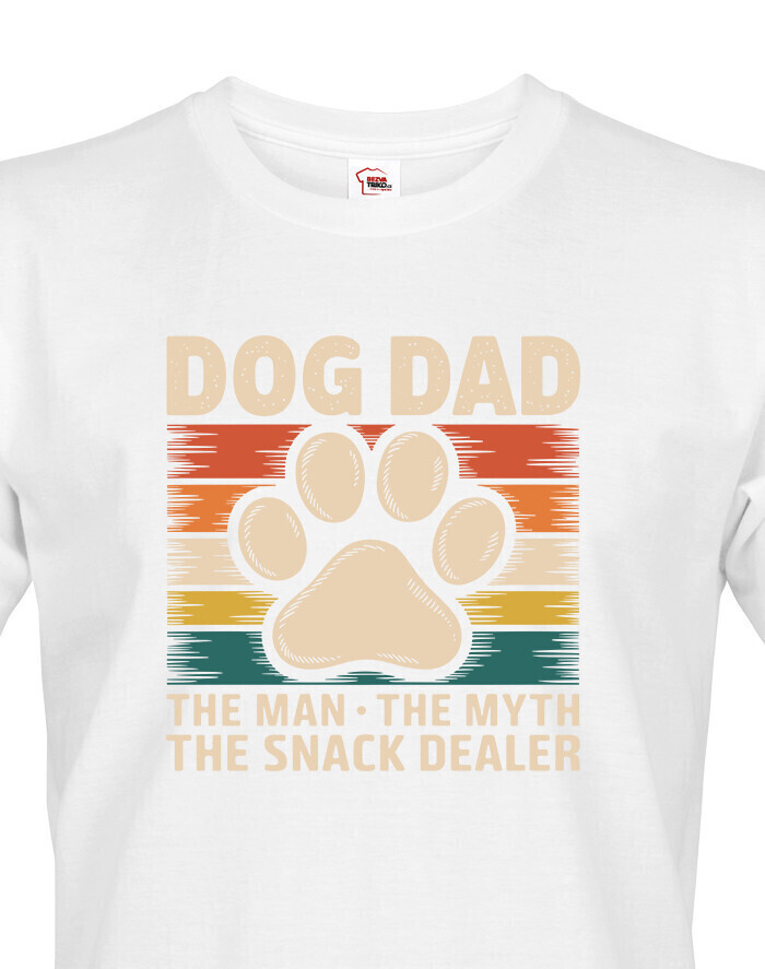 Pánske tričko s nápisom „Dog Dad – The Man. The Myth. The Snack Dealer.“ je must-have kúsok pre každého hrdého majiteľa, ktorý svojho štvornohého parťáka berie ako člena rodiny. Vtipný a štýlový potlač s labkou na retro farebnom pozadí vyjadruje lásku k psom s humorom a nadsázkou, ktorá pobaví nielen psíčkarov. Tričko je ušité z kvalitnej, príjemnej bavlny a ponúka pohodlie po celý deň – či už na prechádzke so psom, na výlete, doma alebo pri bežnom nosení. Hodí sa pre všetky vekové kategórie a vďaka nadčasovému dizajnu sa ľahko hodí do každého šatníka. Ideálny ako darček pre každého „psieho otca“ k narodeninám, Vianociam, Dňu otcov alebo jednoducho tak pre radosť. Originálny spôsob, ako dať svetu vedieť, kto je ten pravý frajer – ten, kto rozdáva pamlsky a bezpodmienečnú lásku. Tričko, ktoré pobaví, poteší a ukáže, že aj muži vedia byť tí najlepší parťáci na štyroch labkách.