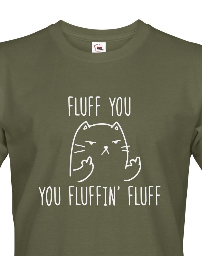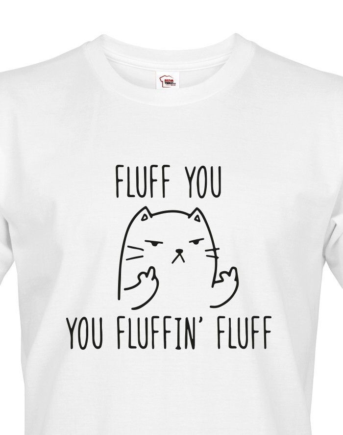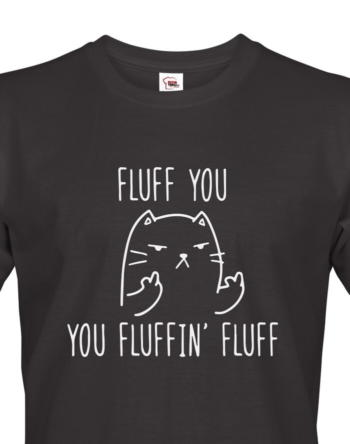 Tričko s potlačou Fluff you fluffin’ fluff. Túto roztomilo sprostú mačičku, ktorá všetkým povie čo si o nich myslí, musíte mať doma. Vtipný a originálny kúsok na párty alebo len posedenie s priateľmi rozosmeje každého, kto miluje mačičky a nadávky. Tričko je vtipný a originálny darček na narodeniny alebo Vianoce.