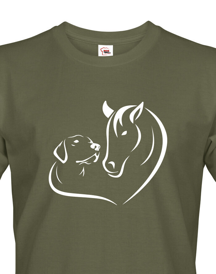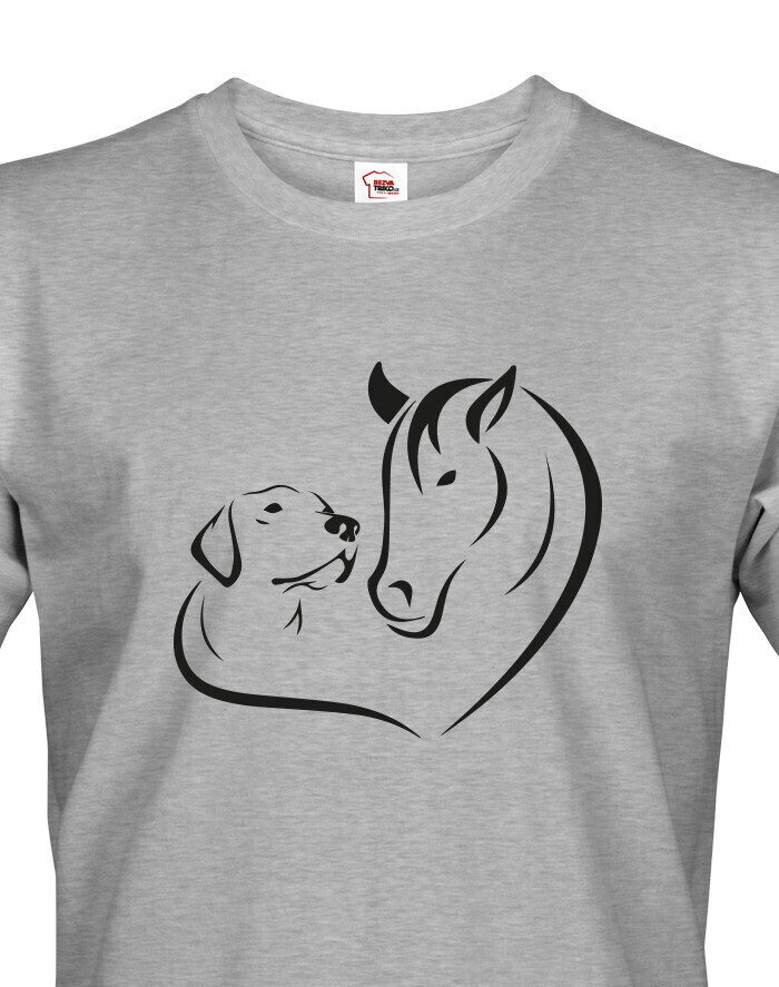 Pánské triko zobrazující neskutečnou lásku ke zvířatům. Pánské triko s potiskem koně a psa zobrazuje pouto, které může mít člověk ke zvířatům. Máte muže, pro kterého zvířata znamenají všechno? Tento motiv je stvořen pro muže, kteří milují ježdění a jsou pejskaři tělem i duší. Triko se skvěle hodí jako dárek na narozeniny, svátek, Vánoce nebo jen tak pro potěšení :)