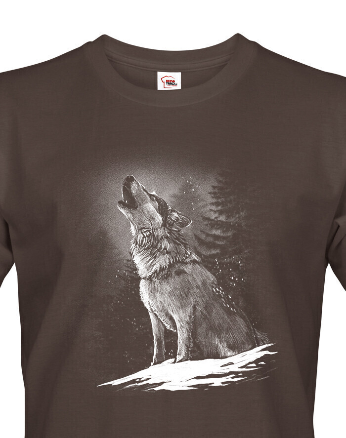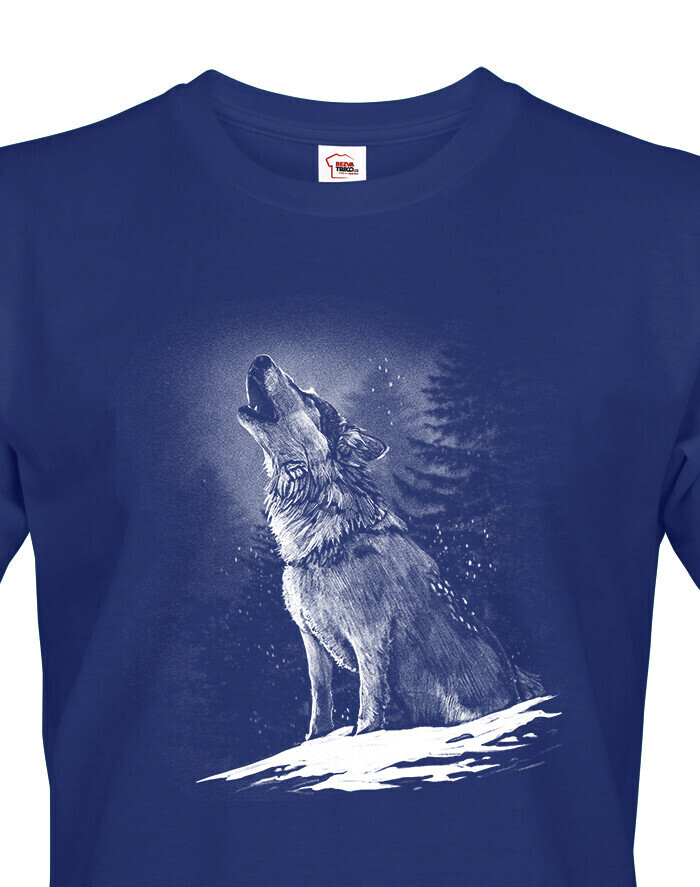 Pánské triko s potiskem vlka. Pokud jsi milovníkem vlka, lesů a přírody tak pak toto triko je pro tebe jako stvořené. Ukaž se s tímto originálním tričkem v práci, ve škole prostě triko se hodí kamkoli. Potisk skvěle vynikne na tmavších odstínech.