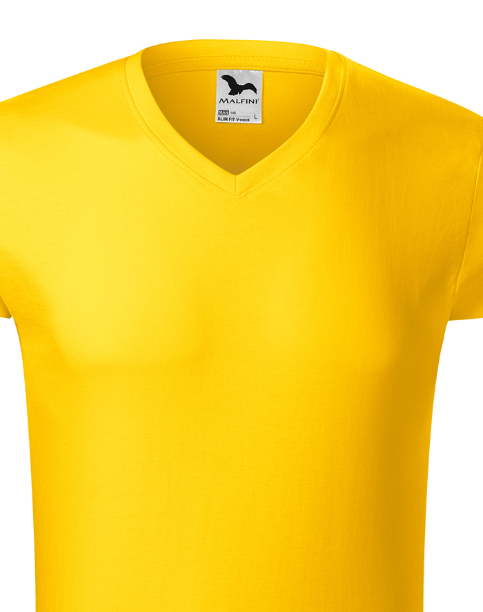 K potlači využívame kvalitné pánske tričká vysokej gramáže s krátkym rukávom a moderným V výstrihom. Vďaka priliehavému strihu s bočnými švami dobre padne na postavu a pôsobí moderne. Úzky lem priekrčníka z rebrového úpletu 1:1 s prídavkom elastanu zaisťuje, že výstrih drží tvar aj po častom nosení.